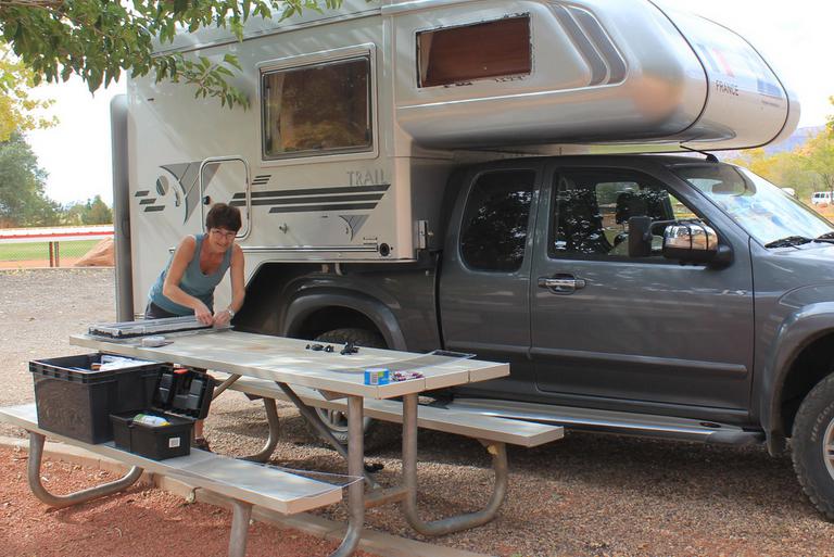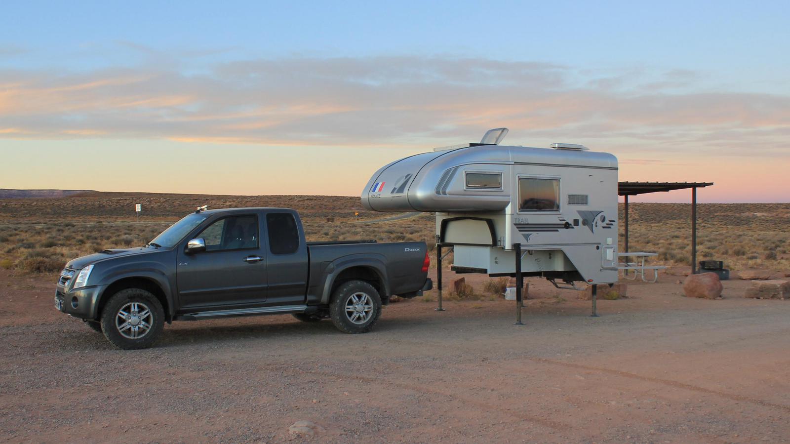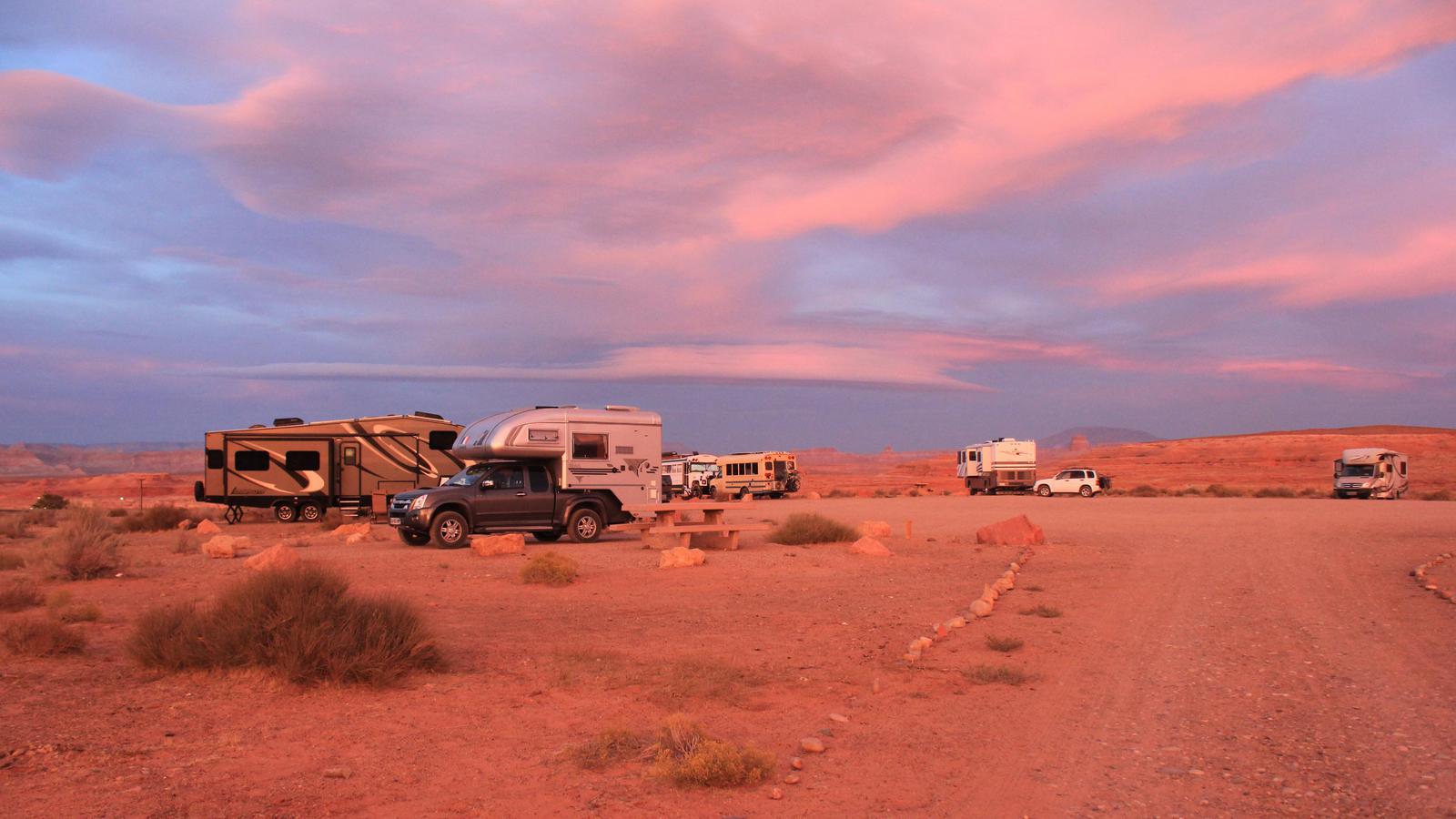 Nous profitions de l'aire de service du campground avant de quitter Lone Rock puis retournons au point de vue sur Wahweap marina pour assister au coucher de soleil.