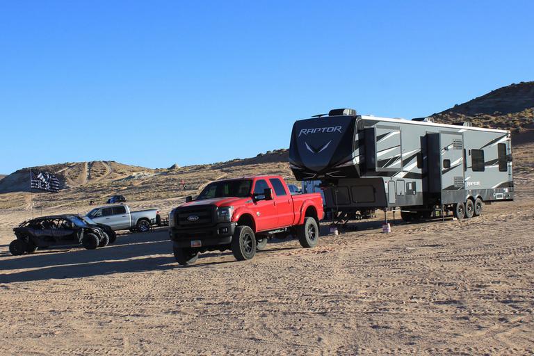Nous ressentons bien que nous sommes en plein désert, l'air est très sec et nous dessèche la peau. Il fait chaud sur le sable, en revanche au bord de l'eau, c'est beaucoup plus frais et il n'est pas question de se baigner... Même s'il y a encore beaucoup de campeurs sur la plage, en camping-car, en fifth-wheel (caravane semi-remorque) ou en caravane, les activités ne sont plus sur le lac mais dans les dunes. La plupart des campeurs sont venus avec leur ATV (quad) ou leur side by side (sorte de voiturette de golf 4X4, à 2 ou 4 places) et parcourent les dunes "à fond la caisse". D'autres s'y essayent même en fourgon... impressionnants.