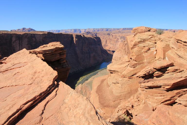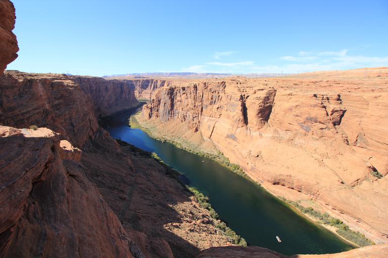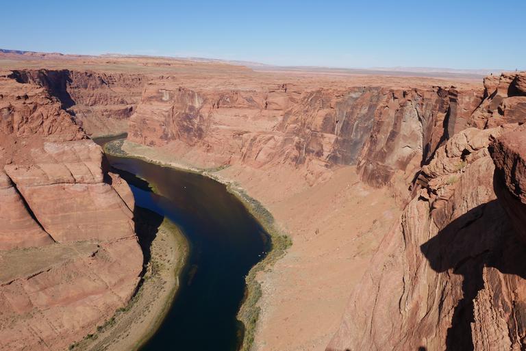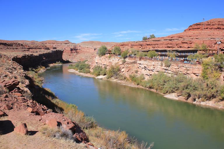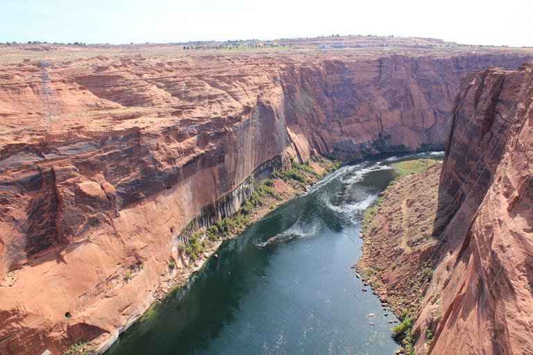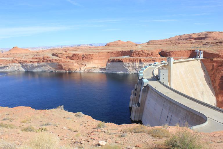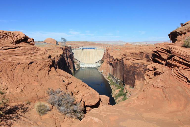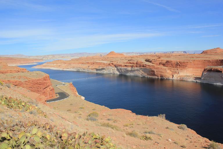 Le Colorado prend sa source dans les Rocheuses au nord-est de l'état du Colorado et se jette dans le golfe de Californie au Mexique après avoir parcouru plus de 2 300km. Plusieurs barrages ont été édifiés sur le fleuve afin de maîtriser ses eaux. Parmi ceux-ci, le barrage Glen Canyon, qui créa ce gigantesque lac Powell, et le barrage Hoover qui formera le lac Mead en amont de Las Vegas. Entre ces deux lacs, le Colorado traverse le Grand Canyon sur près de 450km ...