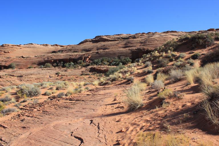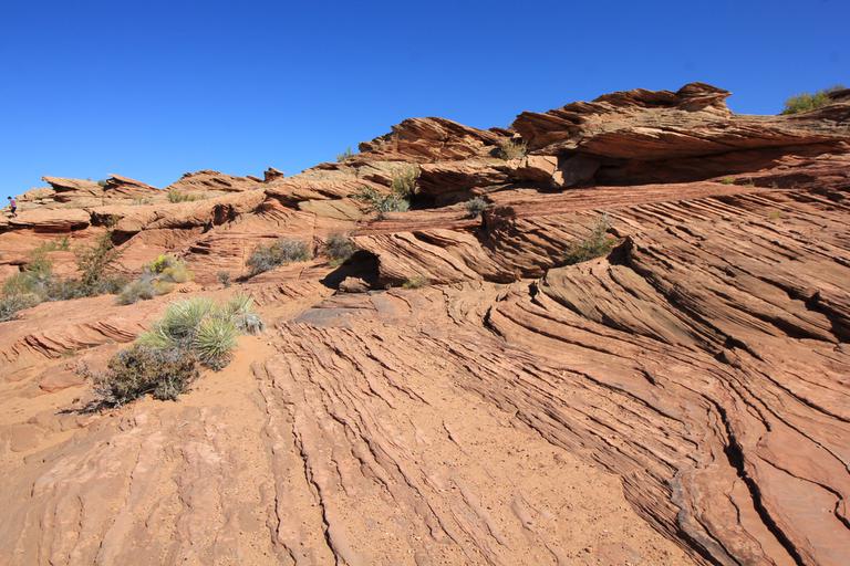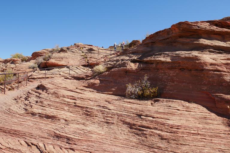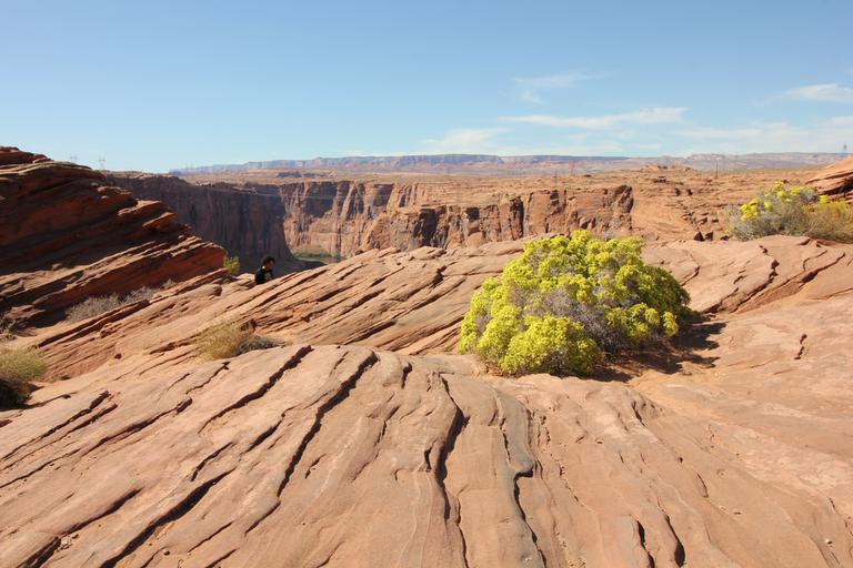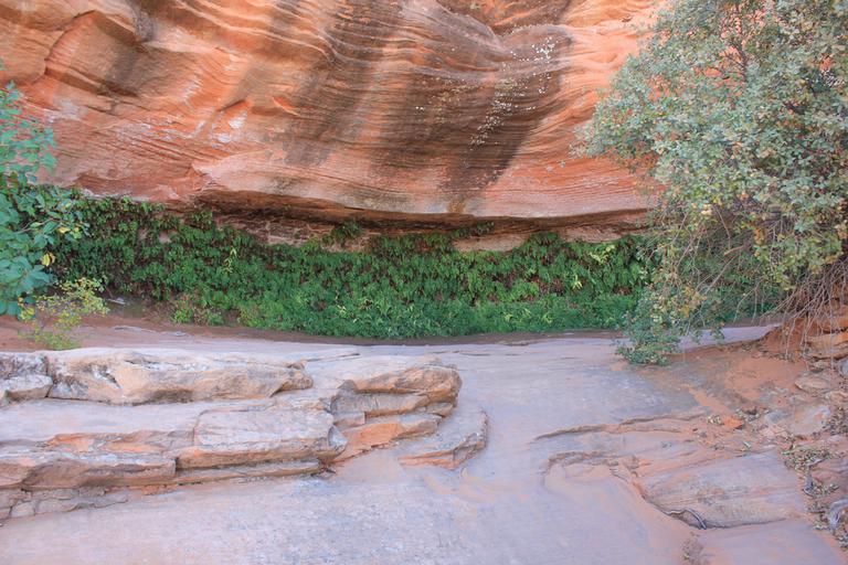 Notre matinée est consacrée à une lessive dans un lavomatique de Page, puis nous partons faire la petite balade indiquée près du barrage menant à Hanging garden, un surprenant tapis de fougères bien vert niché au creux d'un immense banc de grés orangé.