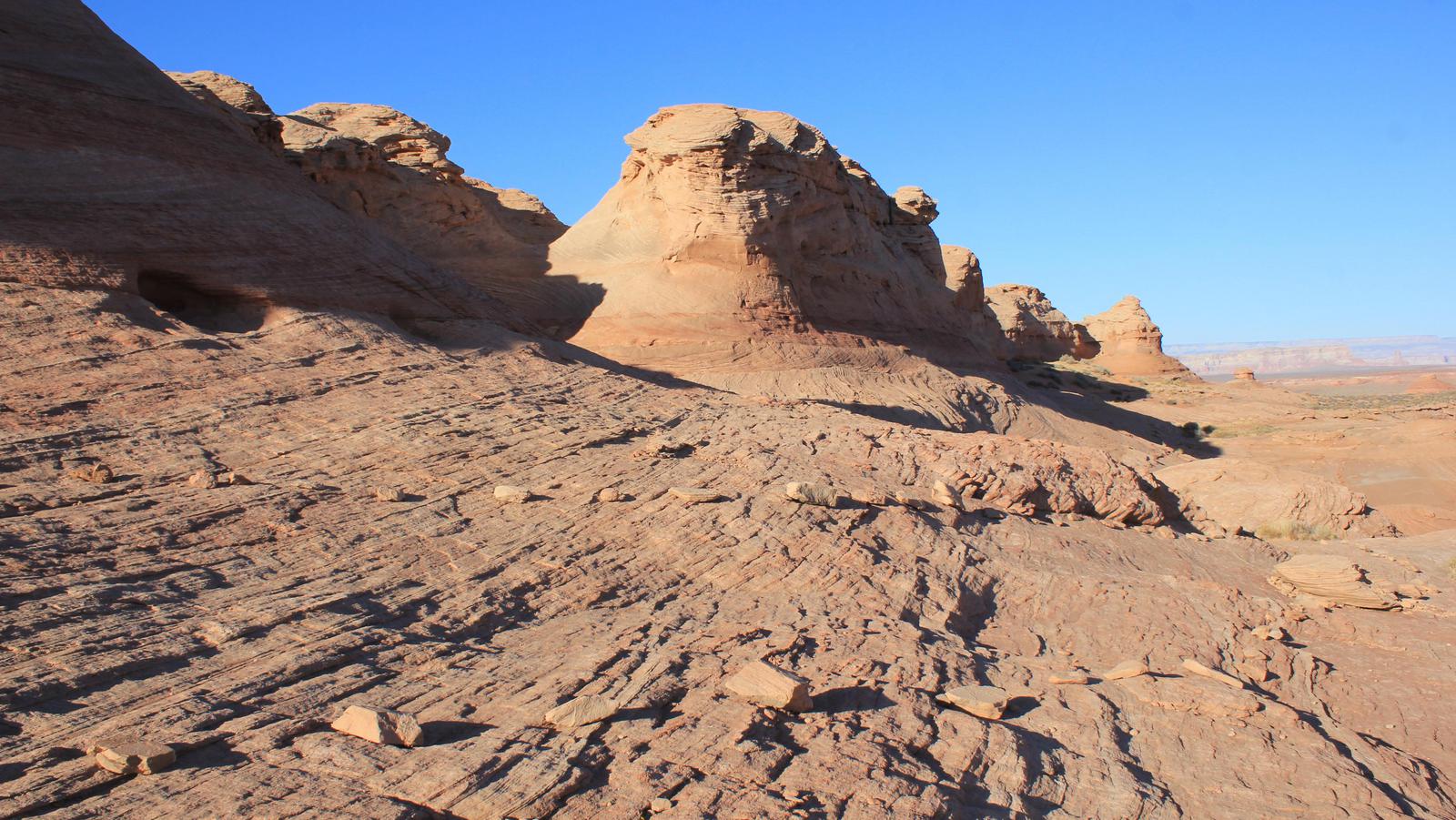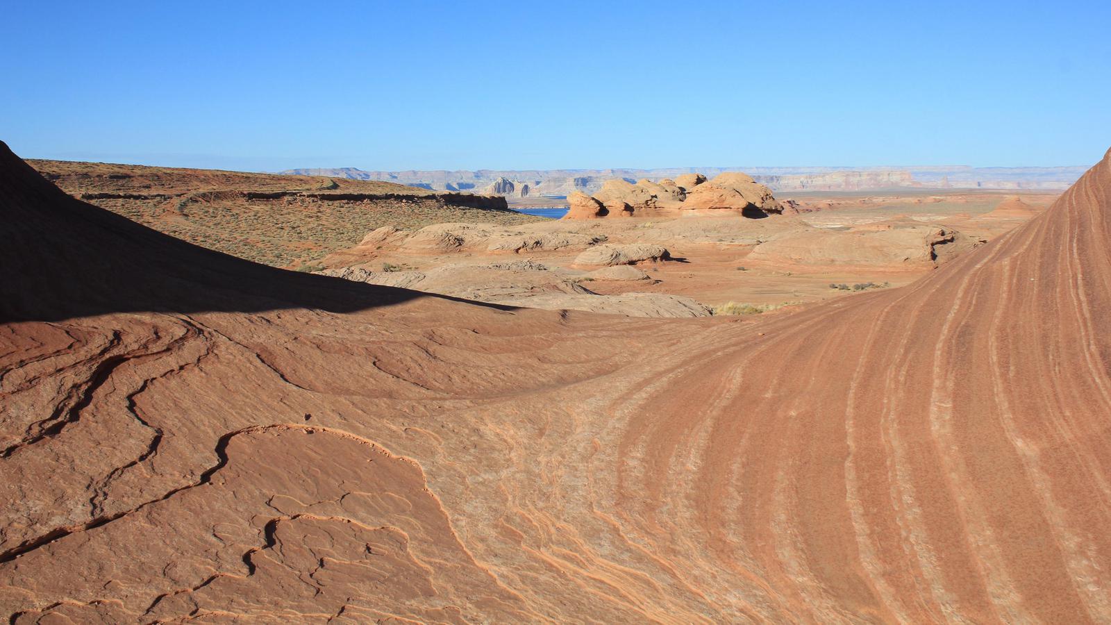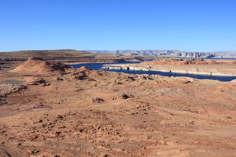 Dernière matinée à Page. Nous retournons près de la Wahwaep marina et sur les rives du lac. Le niveau des eaux me parait encore plus bas qu'en 2009.