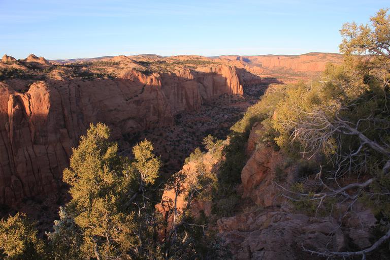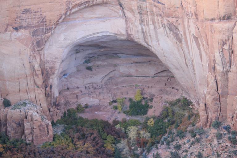 Nous nous dépêchons de faire le Sandal Trail avant le coucher du soleil. Cette balade en aller-retour de 3,2km nous permet d'atteindre un point de vue sur Betatakin Canyon et les ruines d'un village Anasazi nichées sous une arche de grés de l'autre côté du canyon. Ce village, bâti aux alentours de 1250 a vraissemblablement été abandonné une quarantaine d'années plus tard ... La falaise est déjà à l'ombre.