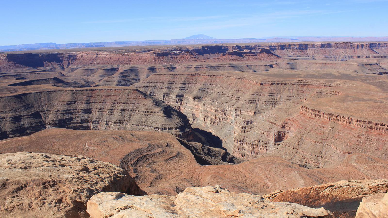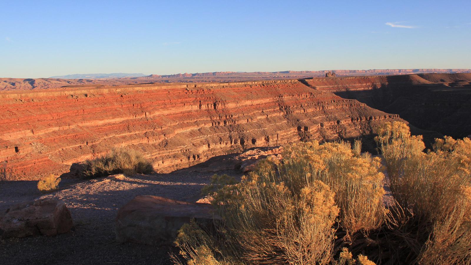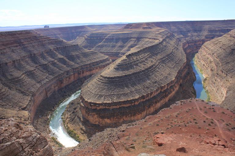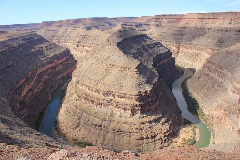 Nous retournons à Goosenecks et reposons la cellule. Avant de partir, nous revenons admirer les extraordinaires méandres de la San Juan River, qu'elle enchaîne les uns à la suite des autres, en creusant des canyons de plus de 300m. Nous prenons quelques photos, en étant frustrés de ne pas réussir à retranscrire ce paysage si grandiose.