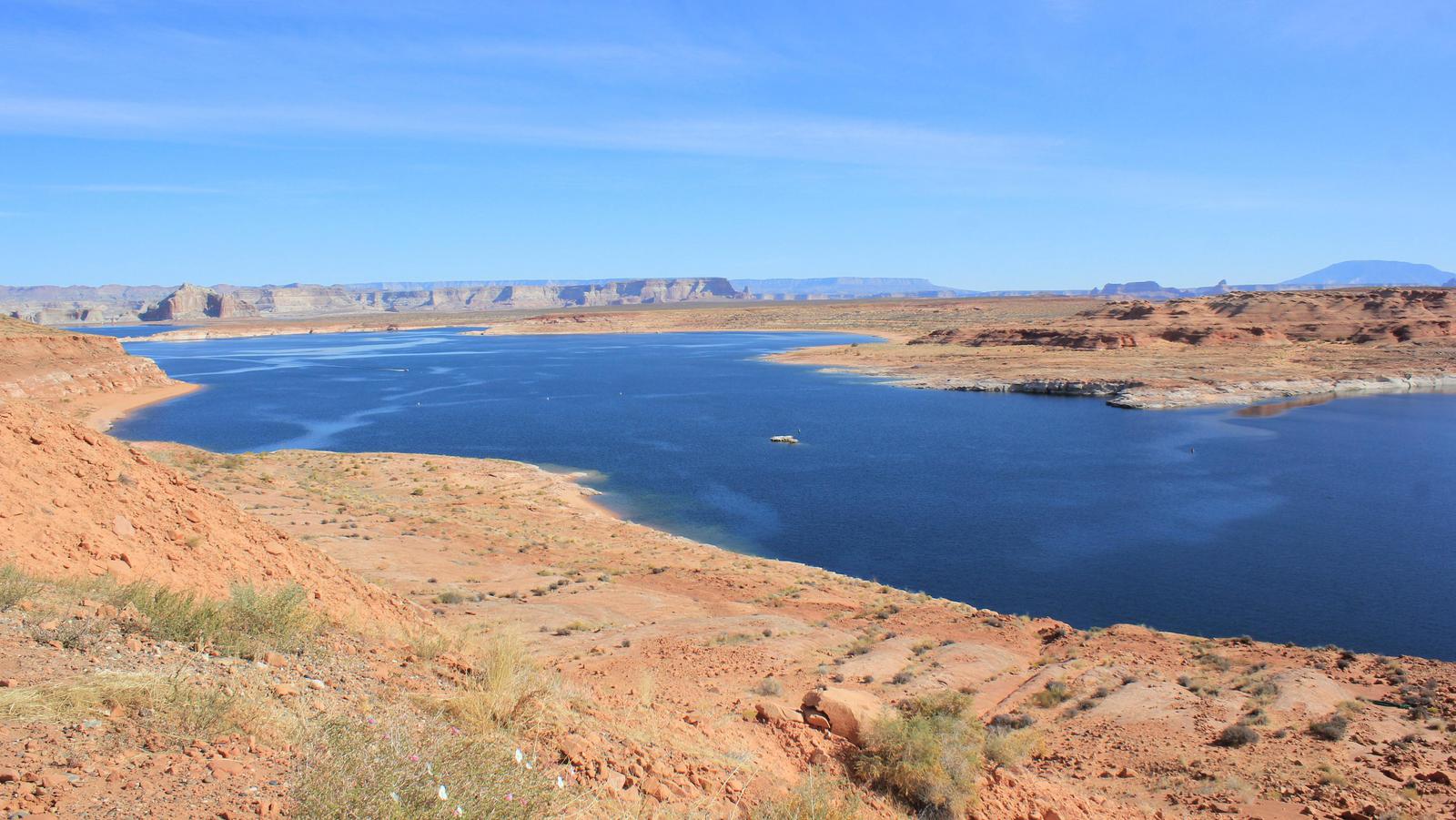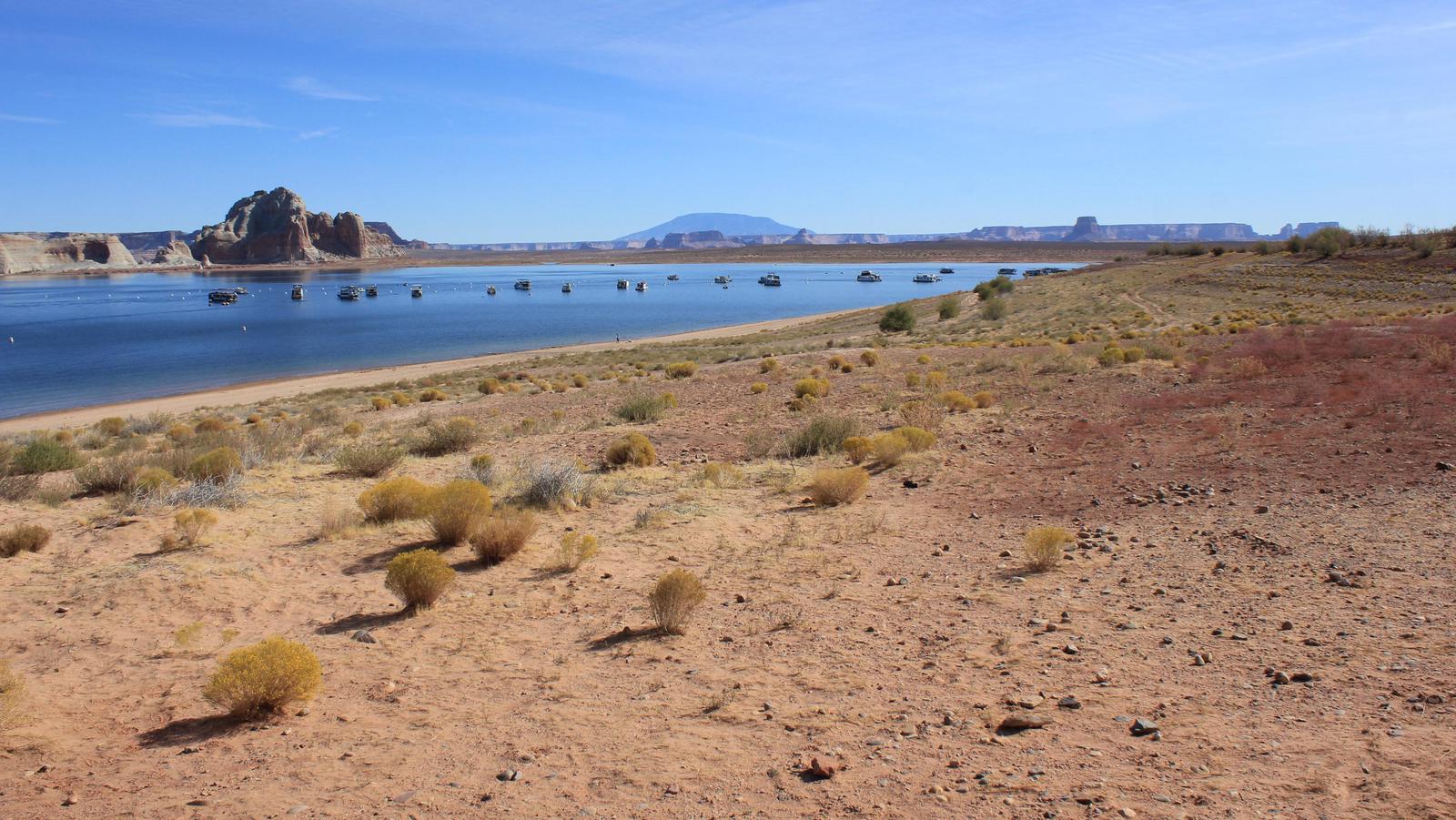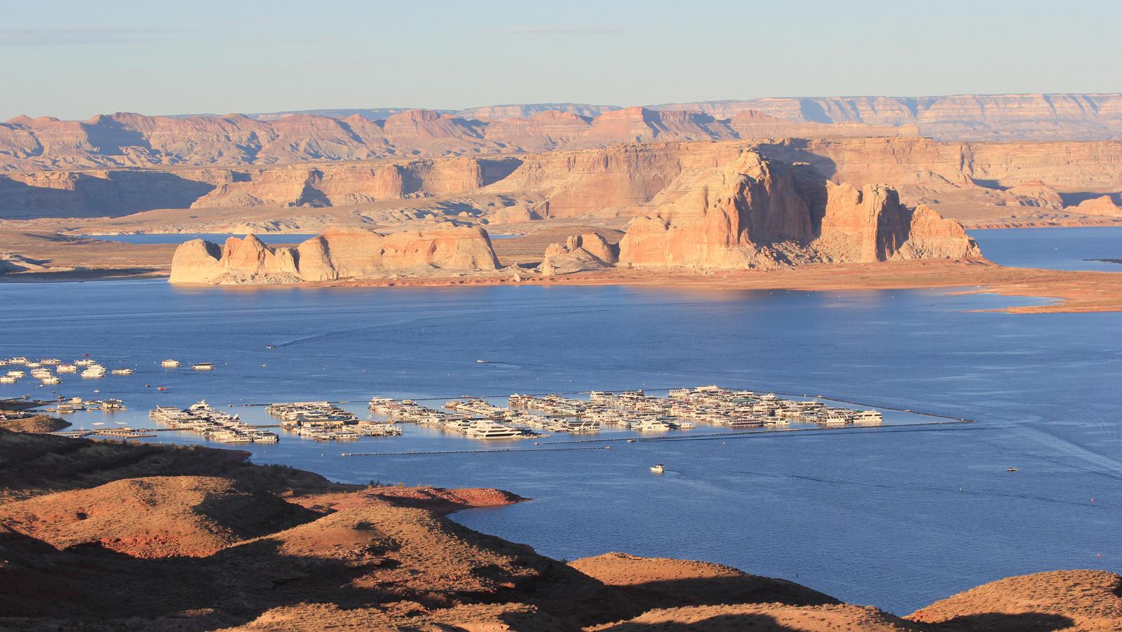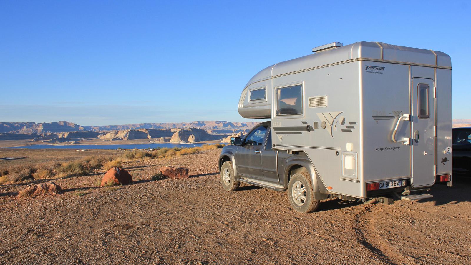 Vers midi, nous partons déjeuner sur le parking du magnifique point de vue sur la Wahweap marina et le lac Powell.