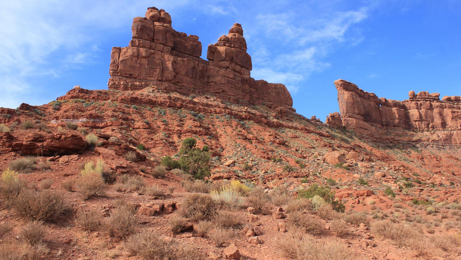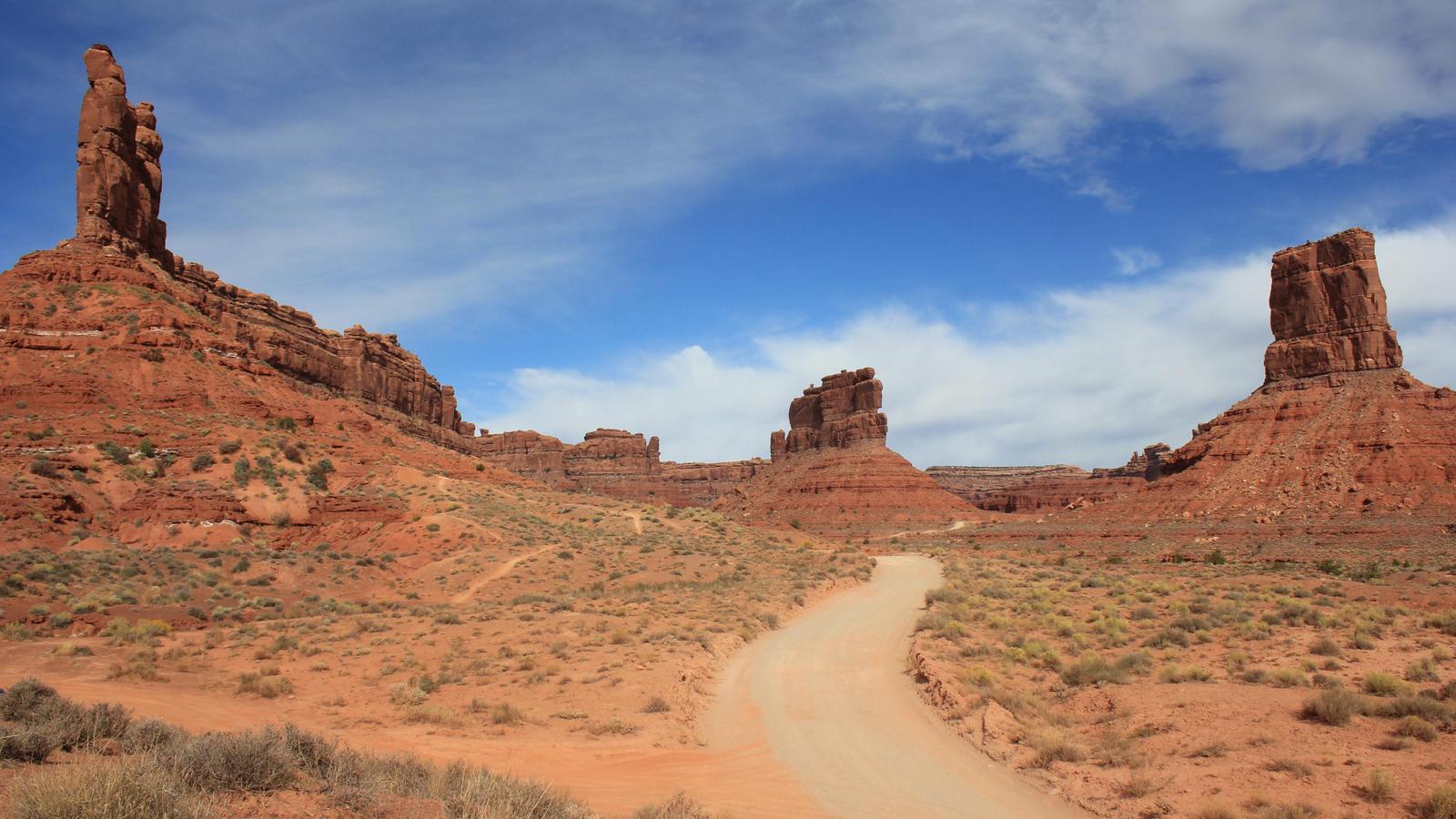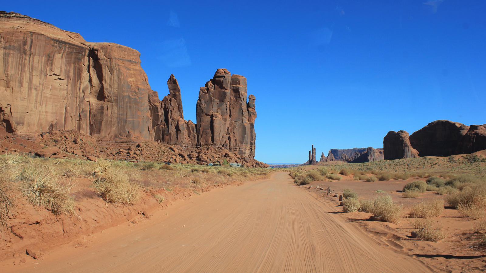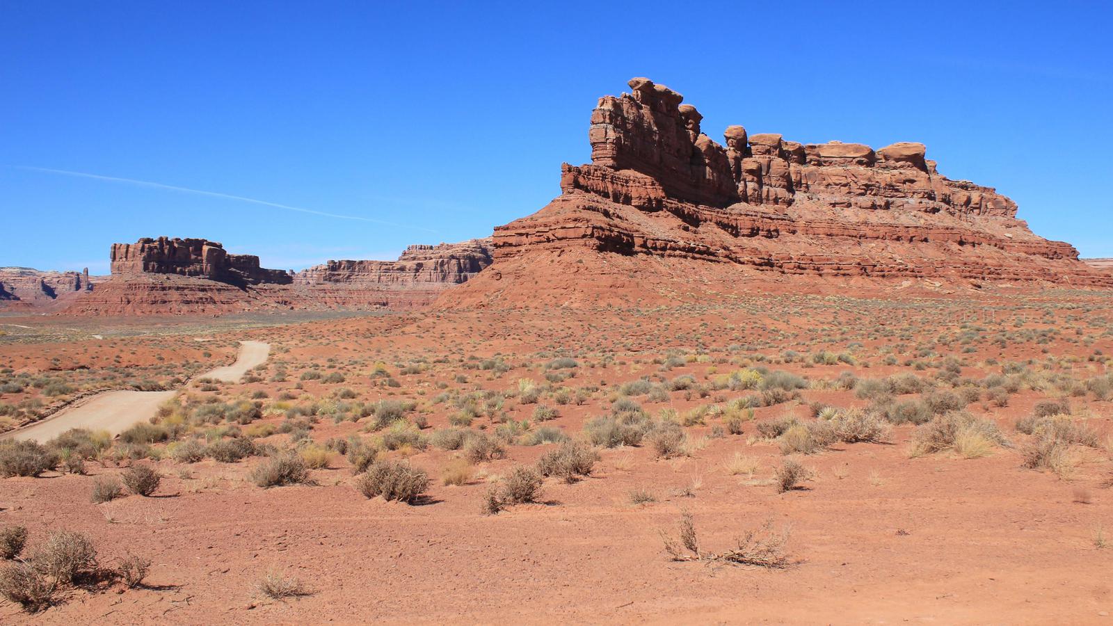 Nous laissons à nouveau la cellule et partons pour Valley of The Gods, une piste d'une trentaine de kilomètres se faufilant entre des buttes et des rochers rouges-orangés, un peu similaire à celle que nous avons faite la veille, mais beaucoup moins fréquentée.