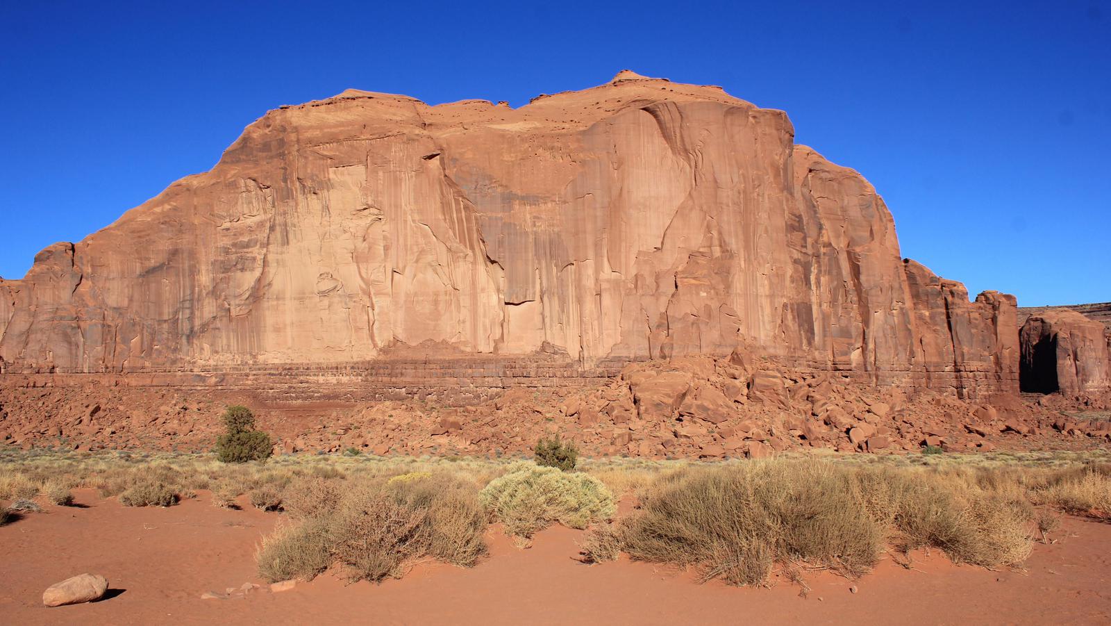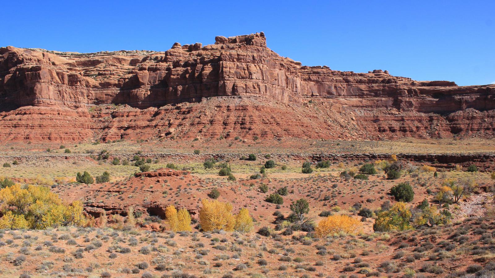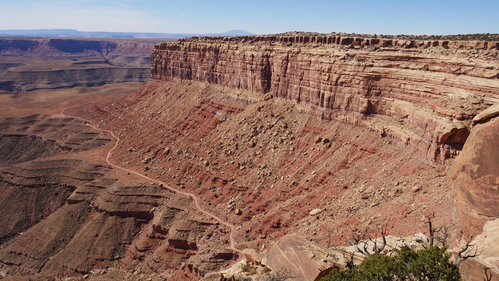 La route nous conduit au pied de la falaise, nous n'arrivons absolument pas à deviner son tracé. Nous laissons de côté pour le moment le départ de la piste Valley of the Gods et continuons sur la Moki Dugway.