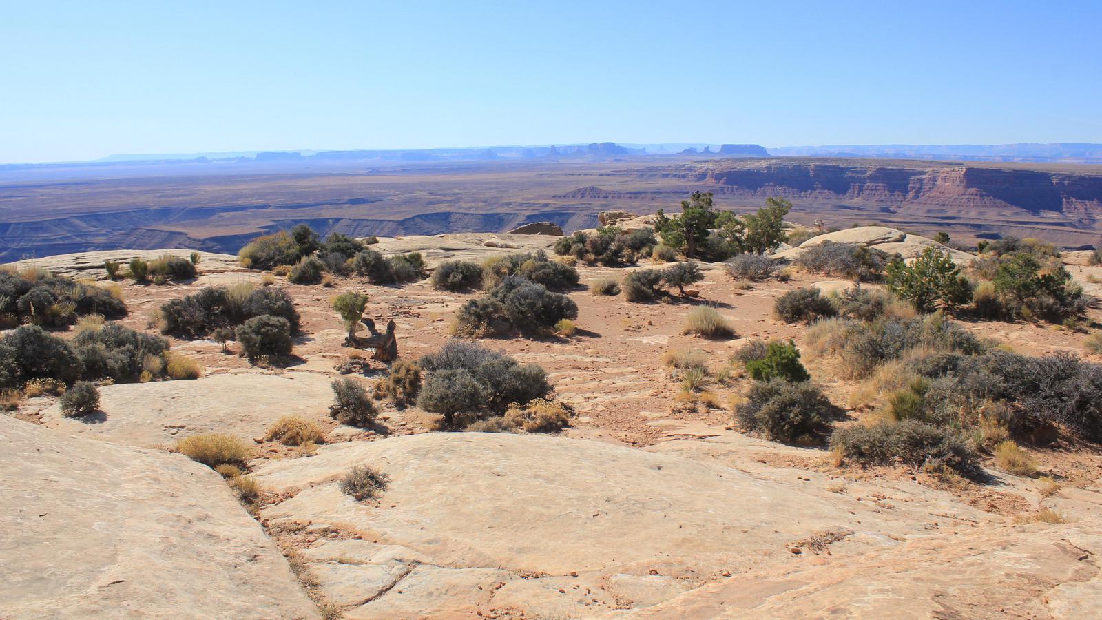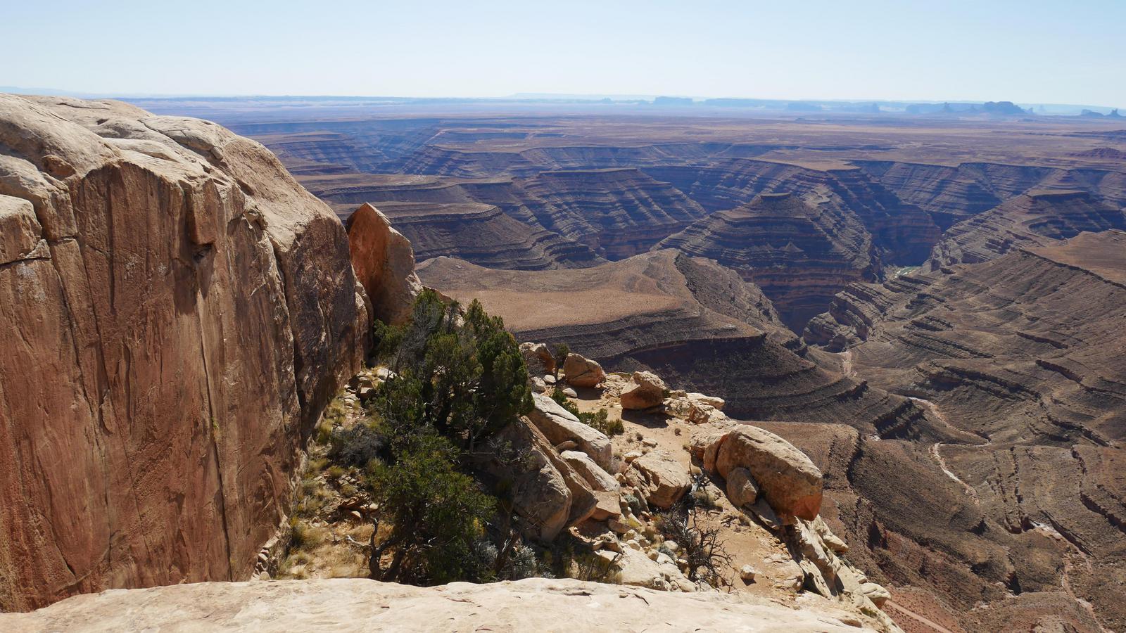 Nous arrivons au sommet sans encombre et suivons l'indication Muley Point Overlook. Une piste sablonneuse nous conduit en un peu plus de six kilomètres à un autre point de vue extraordinaire sur les méandres de la San Juan River.