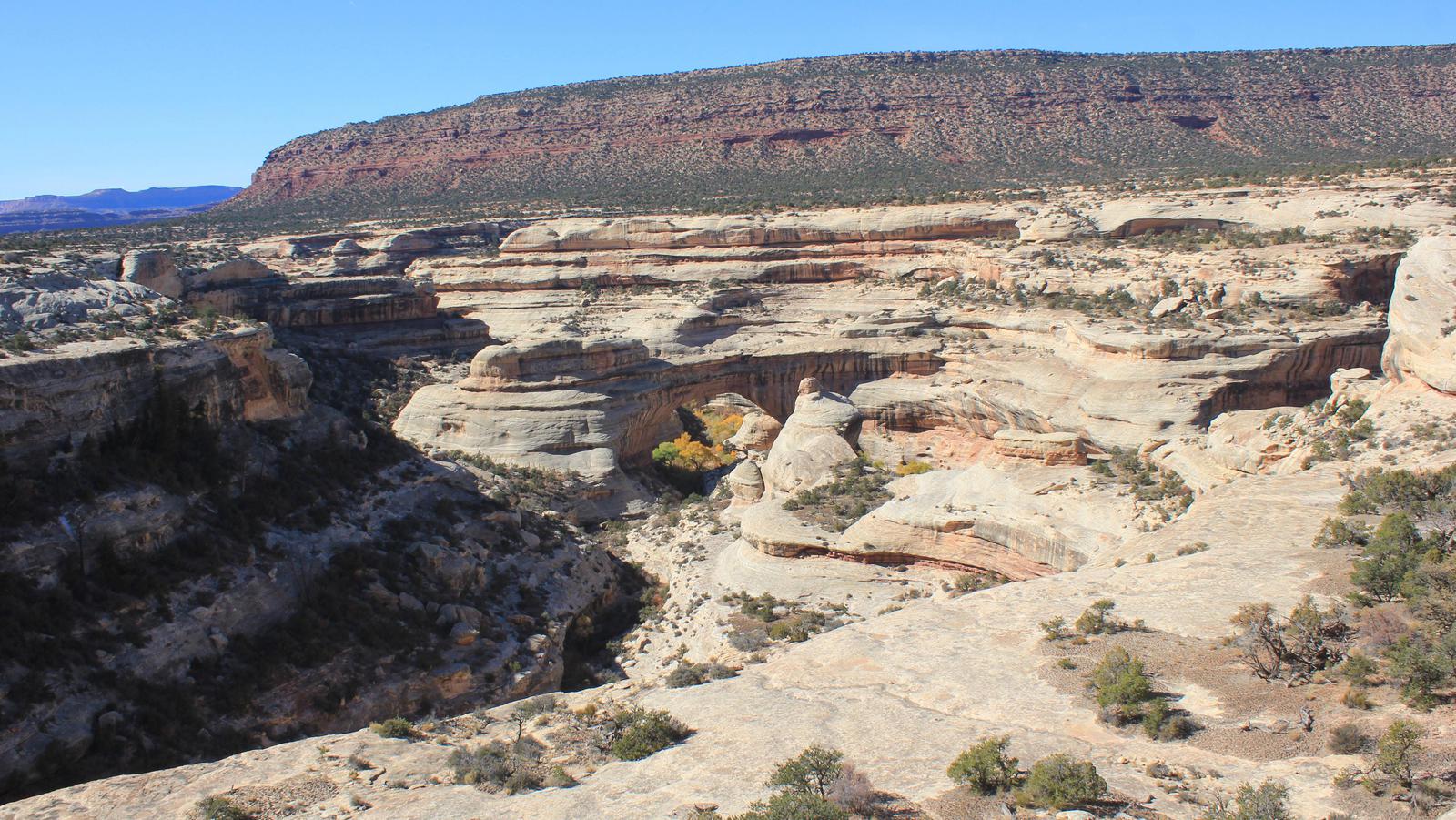 Nous y accédons par la route 261, menant au Natural Bridges National Monument et au lac Powell par la fameuse Moki Dugway, un tronçon de cinq kilomètres en lacets non goudronné et non sécurisé, montant jusqu'au Cedar Mesa.