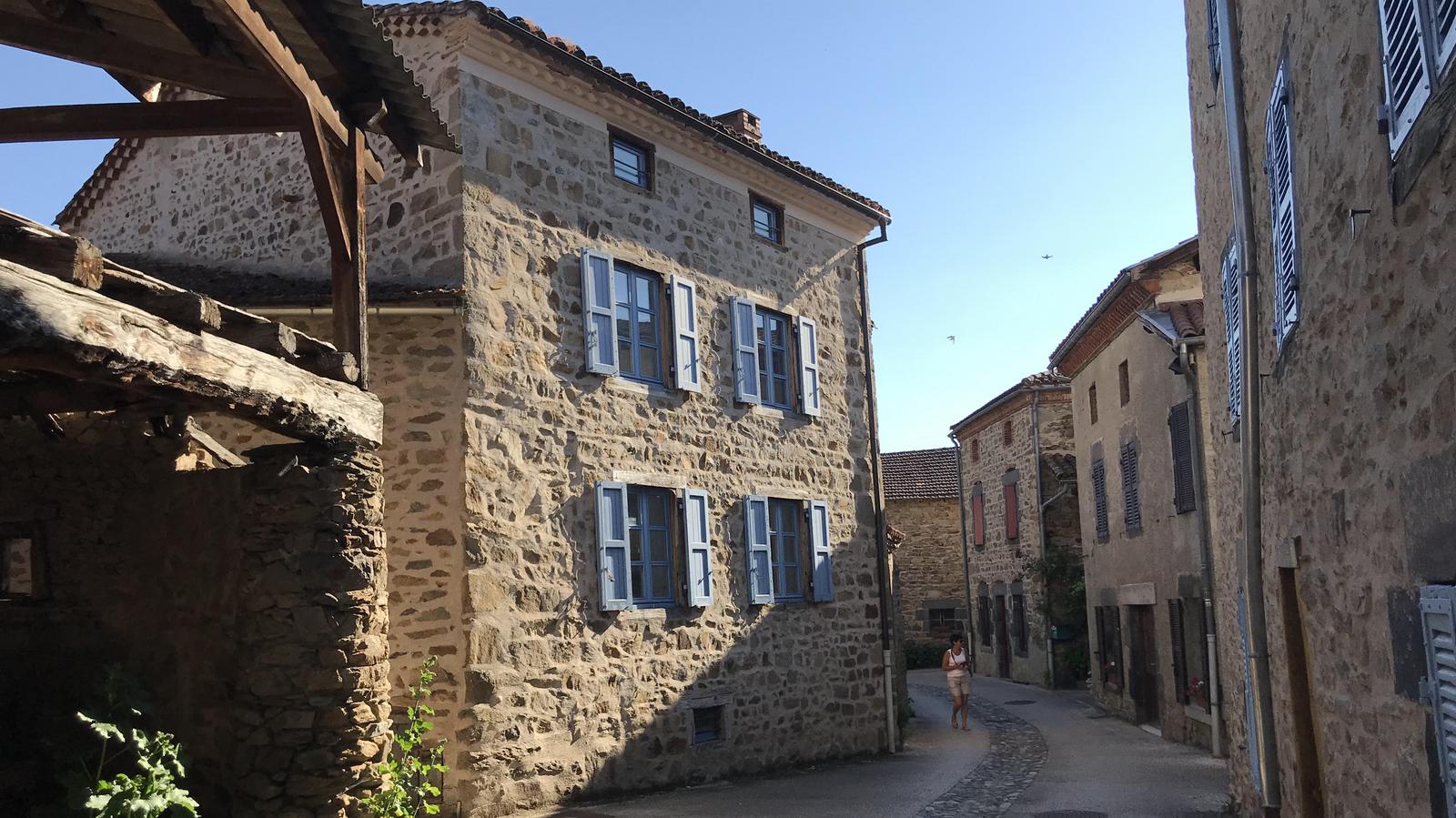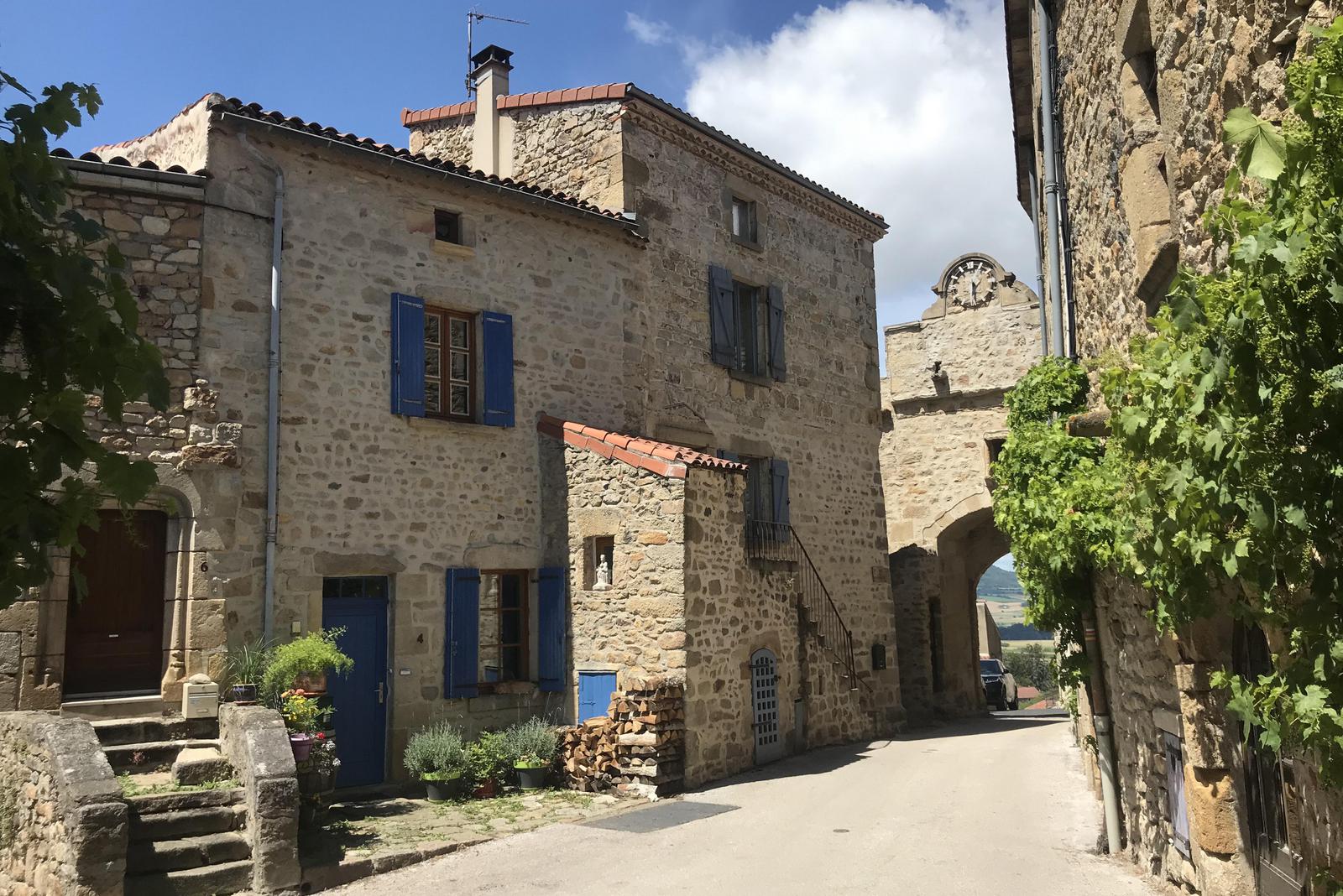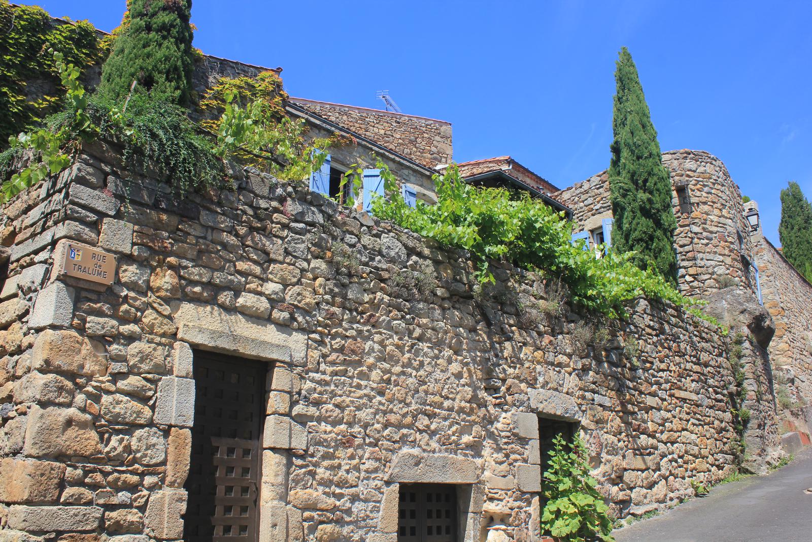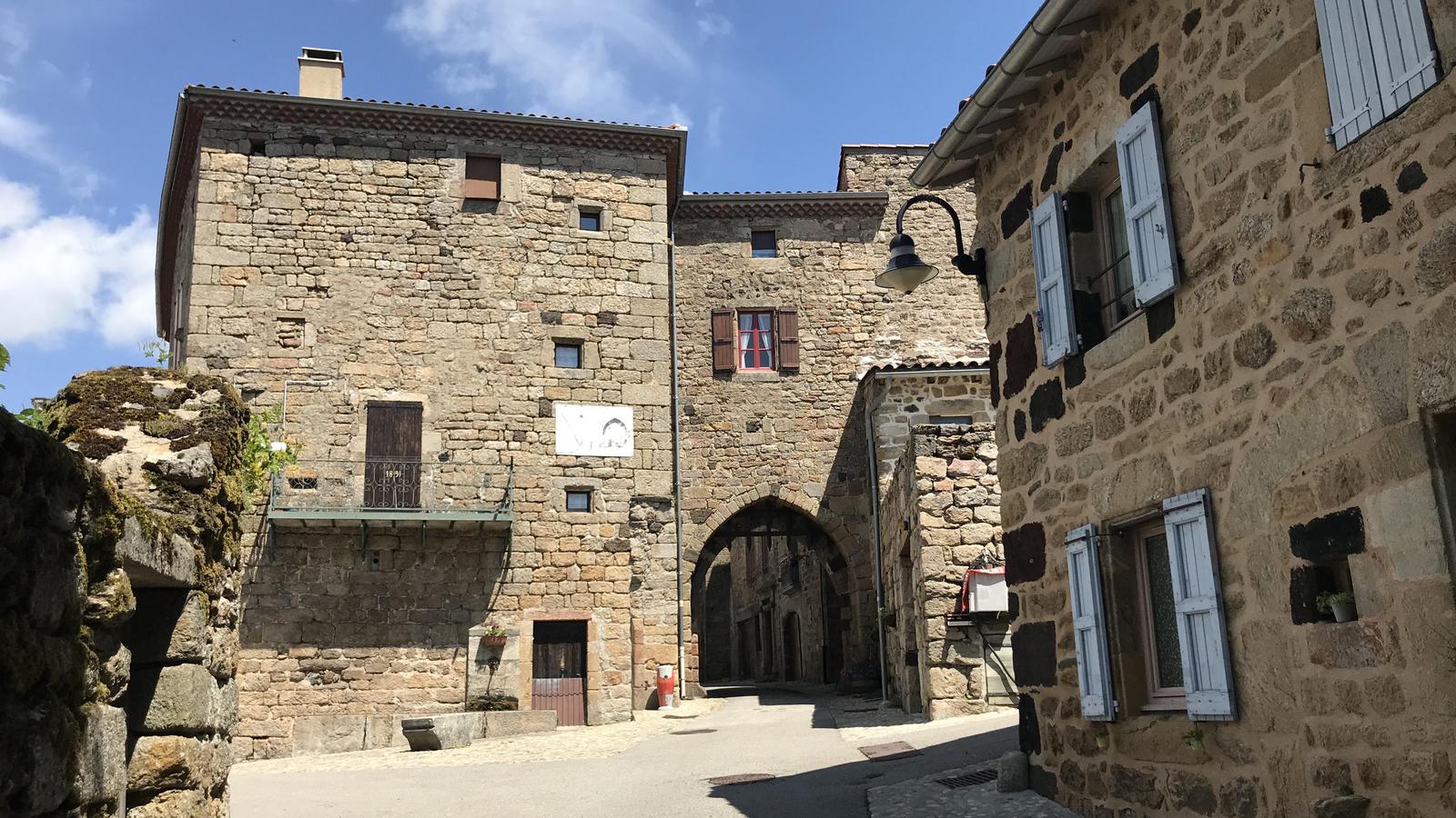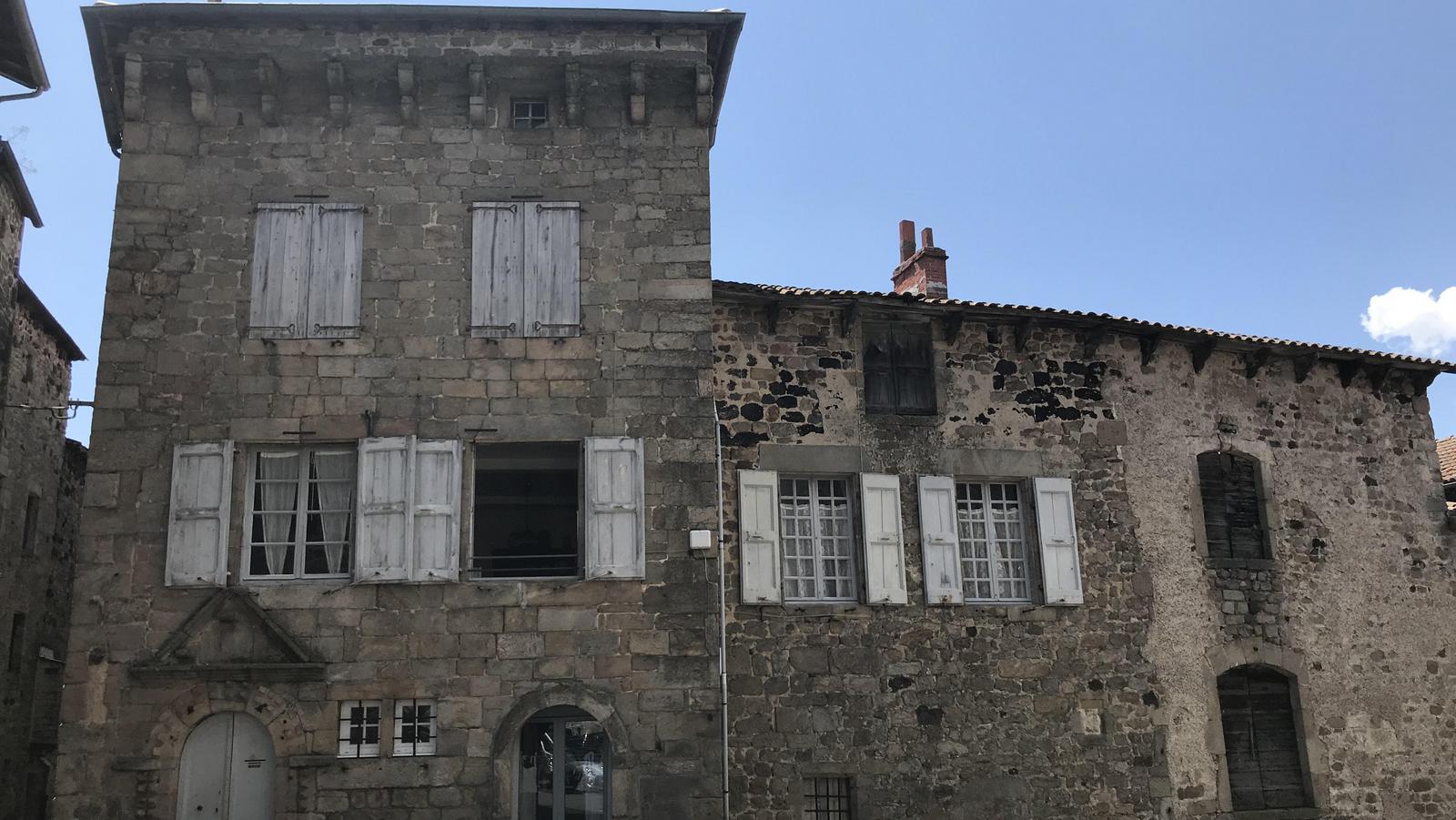 Nous retrouvons ici les constructions en pierres volcaniques typiques de la région. Le village occupe toute la partie inférieure de la butte, nous suivons les rues en pente et arrivons sur la place de la Reine Margot. Nous poursuivons notre ascension en longeant une grande bâtisse du XVIè siècle aux nombreux détails sculptés, la Maison des Capitaines...