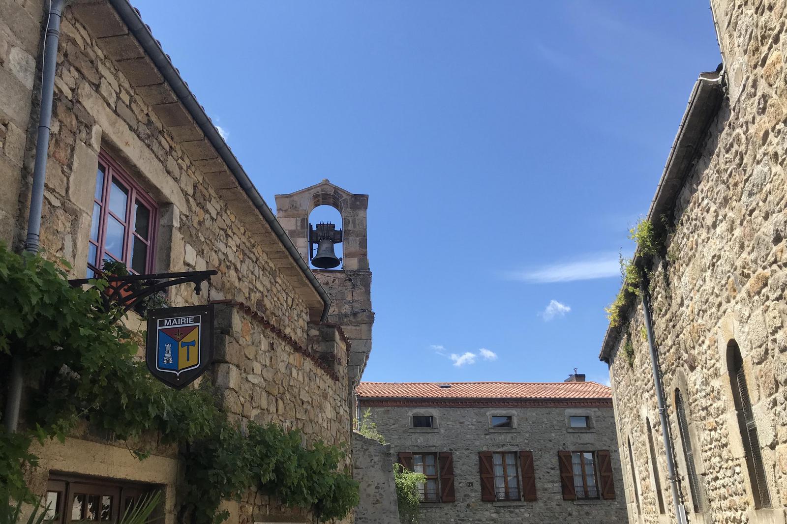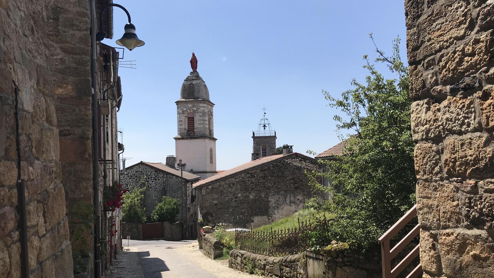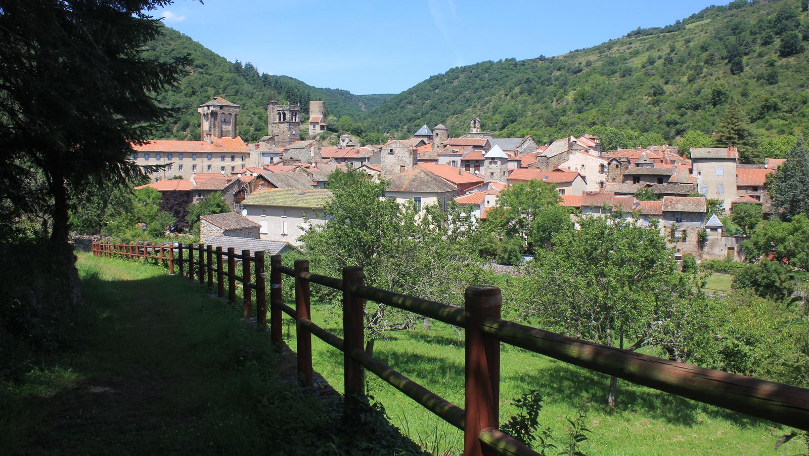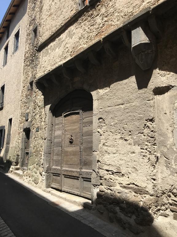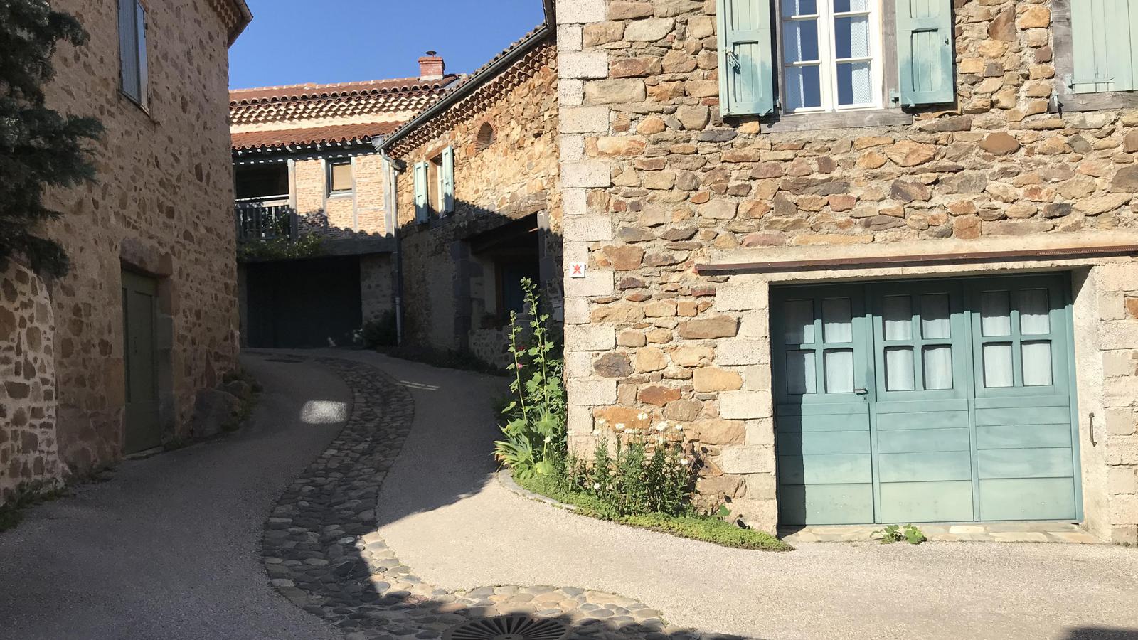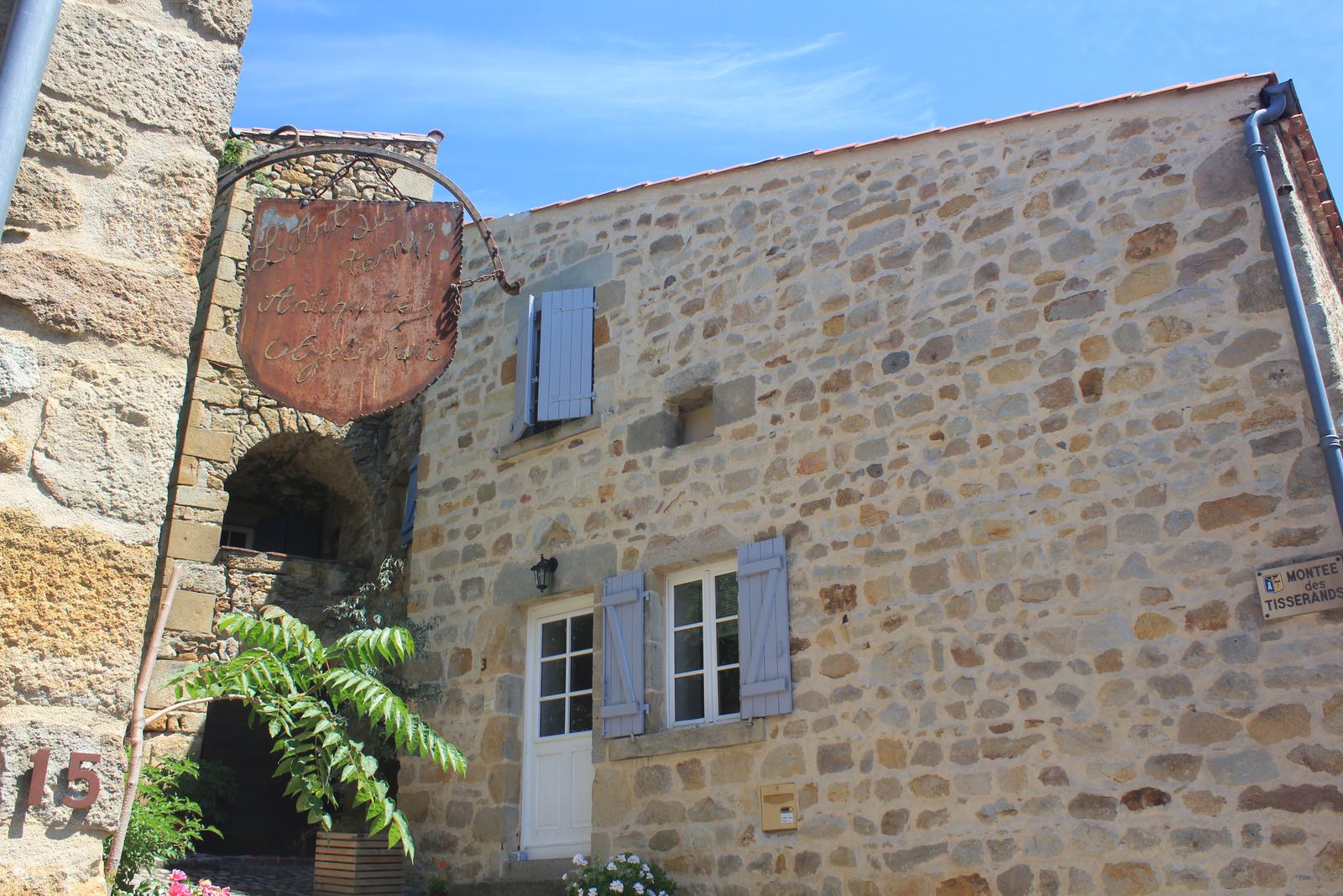 Nous retrouvons ici les constructions en pierres volcaniques typiques de la région. Le village occupe toute la partie inférieure de la butte, nous suivons les rues en pente et arrivons sur la place de la Reine Margot. Nous poursuivons notre ascension en longeant une grande bâtisse du XVIè siècle aux nombreux détails sculptés, la Maison des Capitaines...