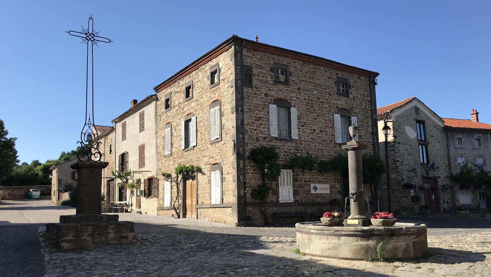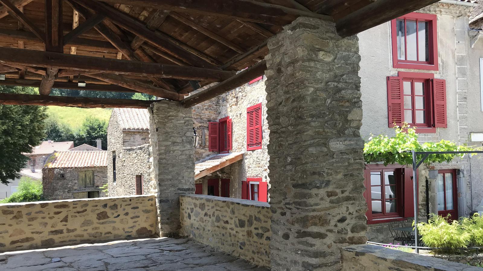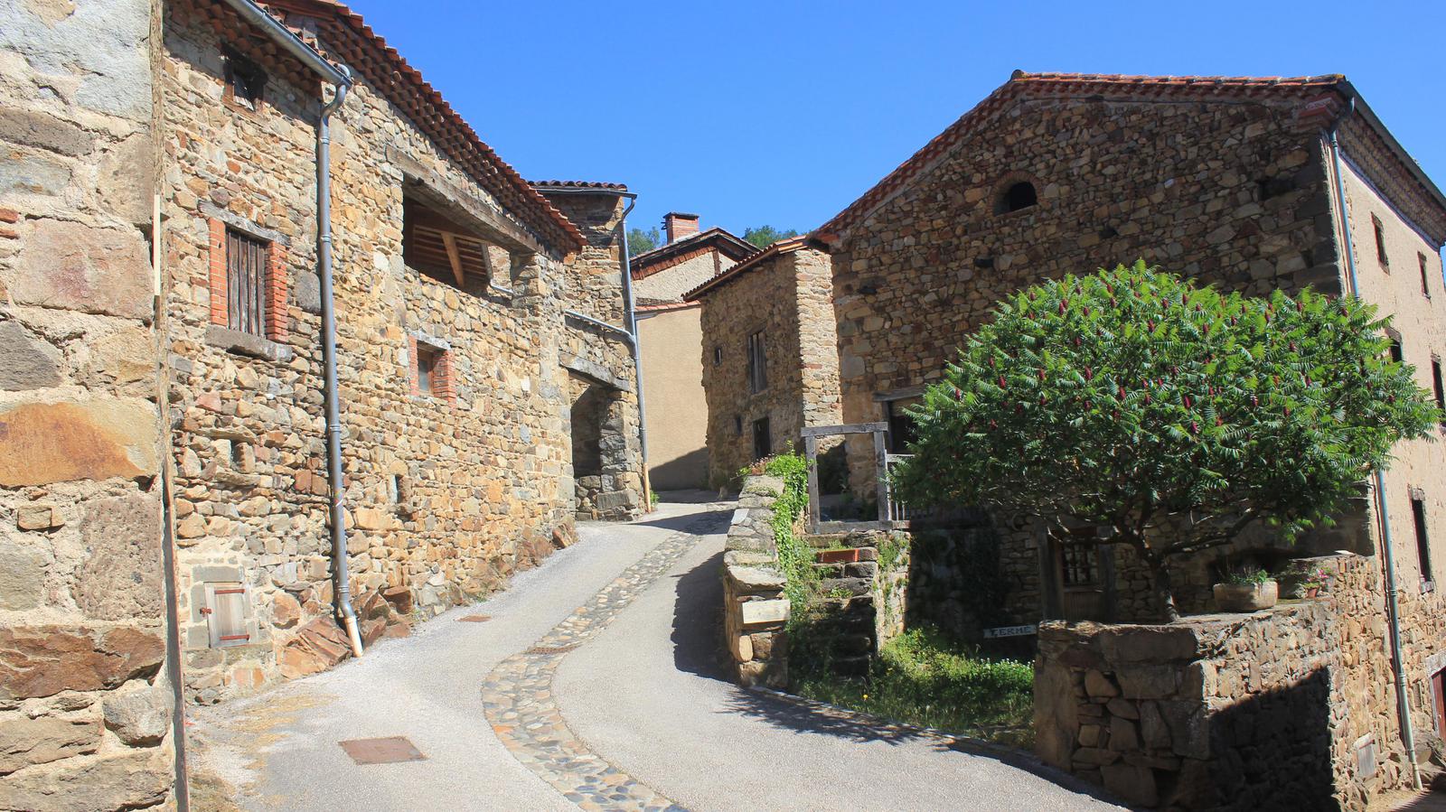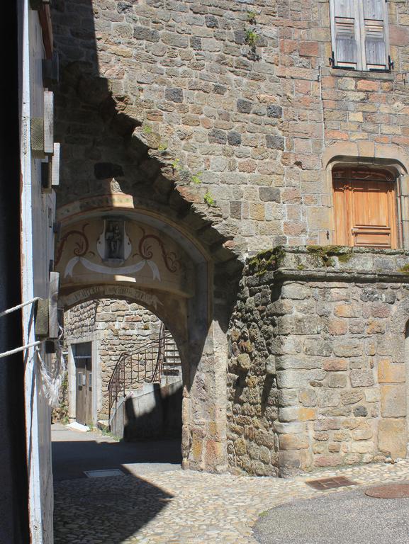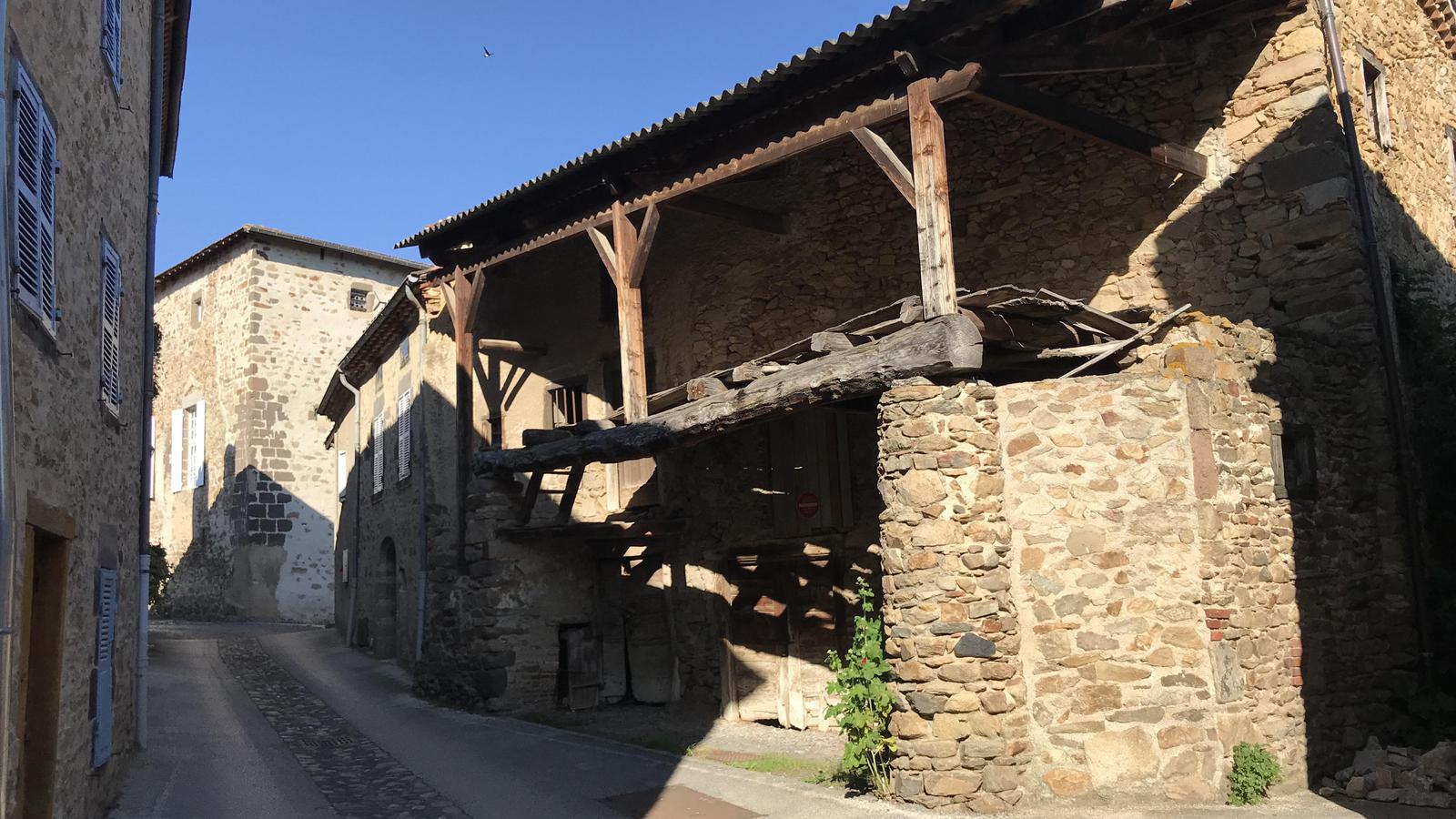 Nous retrouvons ici les constructions en pierres volcaniques typiques de la région. Le village occupe toute la partie inférieure de la butte, nous suivons les rues en pente et arrivons sur la place de la Reine Margot. Nous poursuivons notre ascension en longeant une grande bâtisse du XVIè siècle aux nombreux détails sculptés, la Maison des Capitaines...