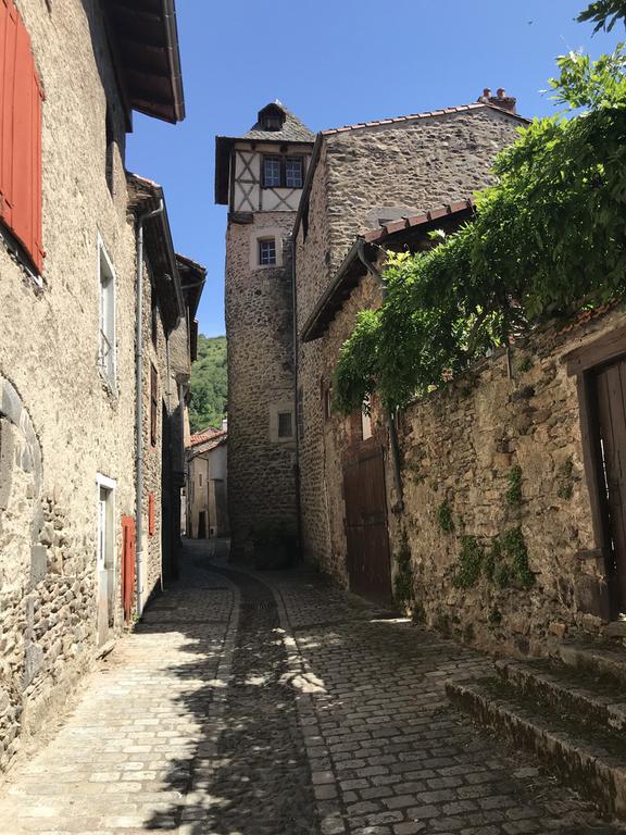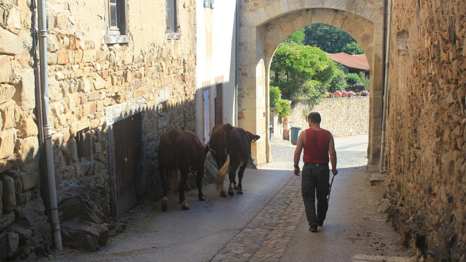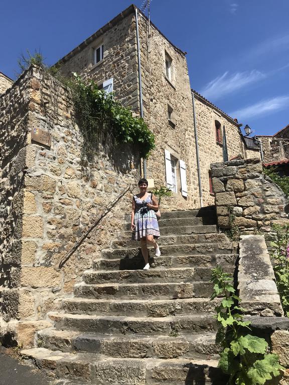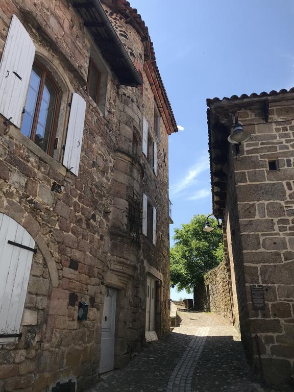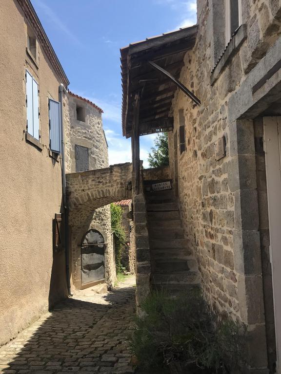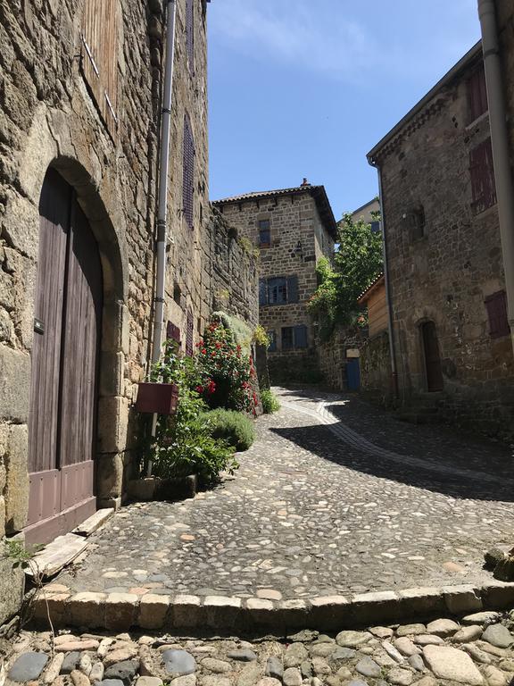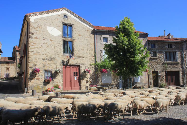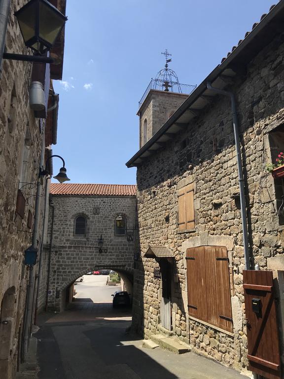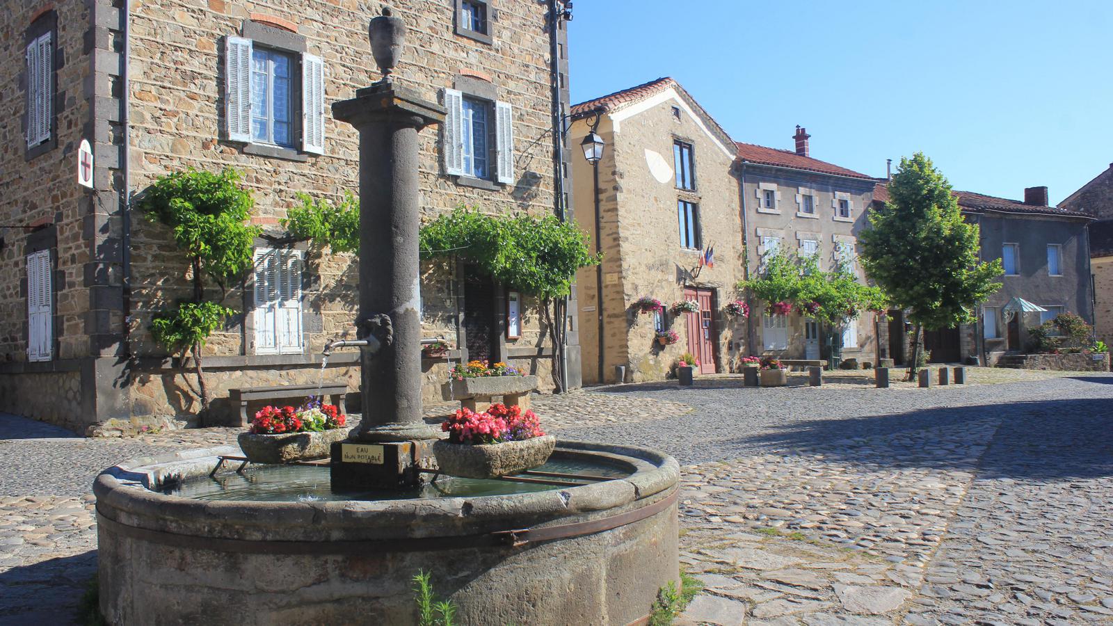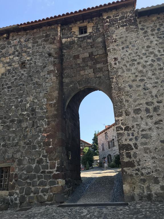 Nous retrouvons ici les constructions en pierres volcaniques typiques de la région. Le village occupe toute la partie inférieure de la butte, nous suivons les rues en pente et arrivons sur la place de la Reine Margot. Nous poursuivons notre ascension en longeant une grande bâtisse du XVIè siècle aux nombreux détails sculptés, la Maison des Capitaines...