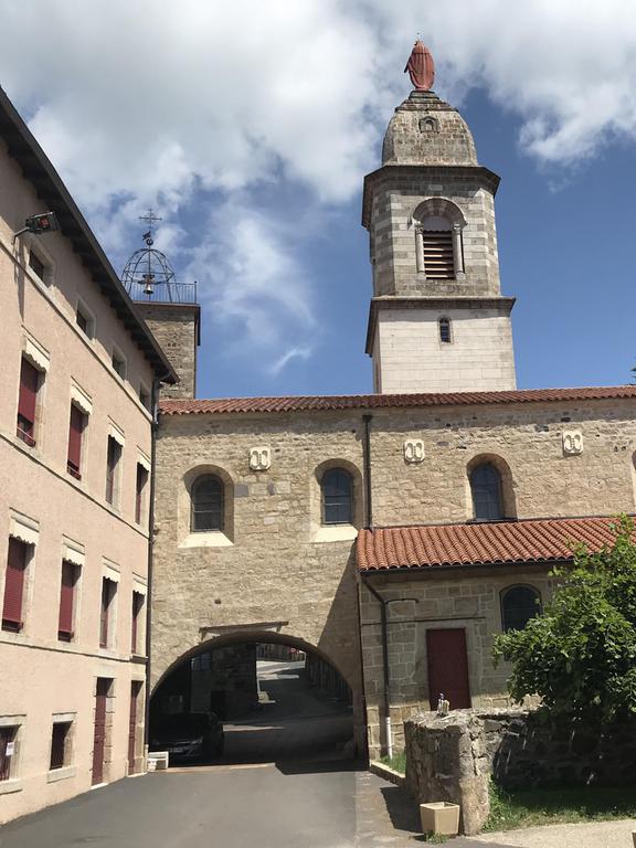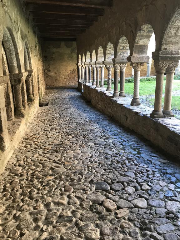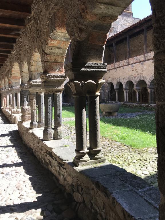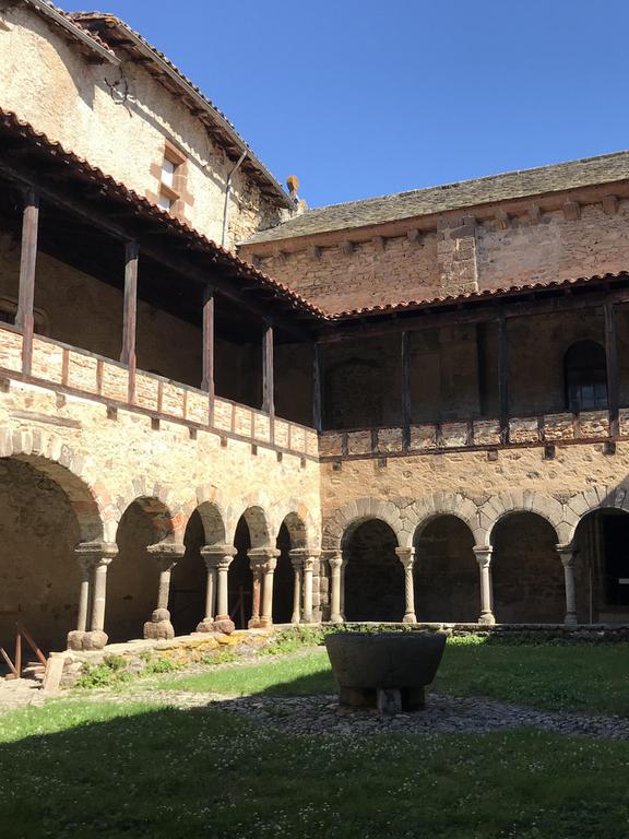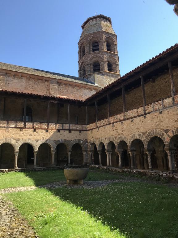 De l'ancienne abbaye fondée en 1057, il subsiste, à côté de l'église, un beau cloître romain, unique en Auvergne, aux colonnettes simples et doubles, de forme cylindrique, torsadée, voire polygonale, surmontées de chapitaux sculptés. Au fond du cloître, une petite porte donne accès au réfectoire, une pièce tout en longueur dont tout le mur du fond est occupé par une peinture murale datée du XIIè siècle.