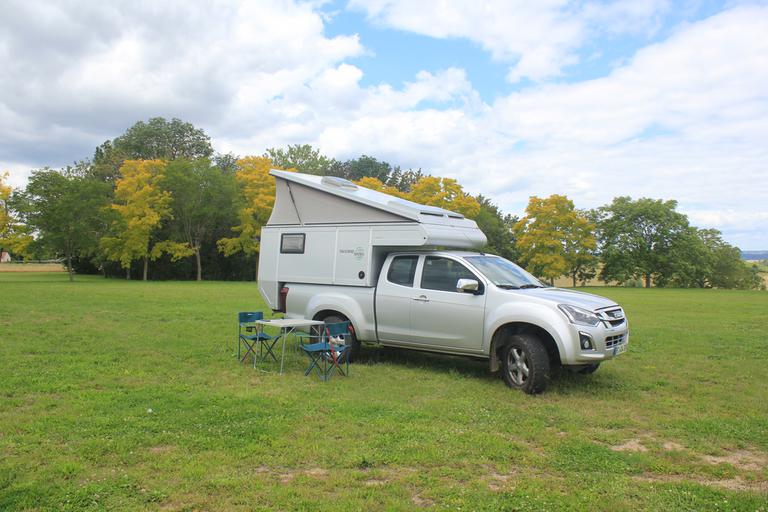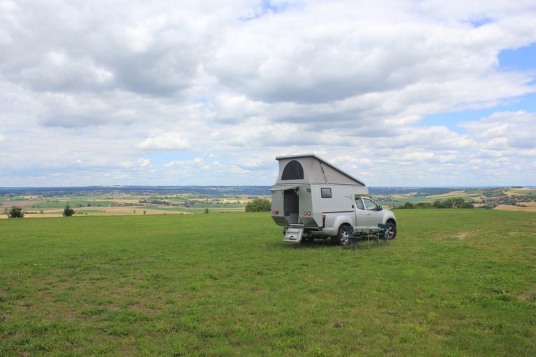 Le parking au pied du village est très agréable, très grand avec une belle vue sur les alentours. Il bénéficie même d'un point d'eau, cependant il est très en pente et nécessiterait de grosses cales pour s'installer de niveau. Nous complétons notre réservoir et partons à la recherche d'un autre spot pour la nuit.