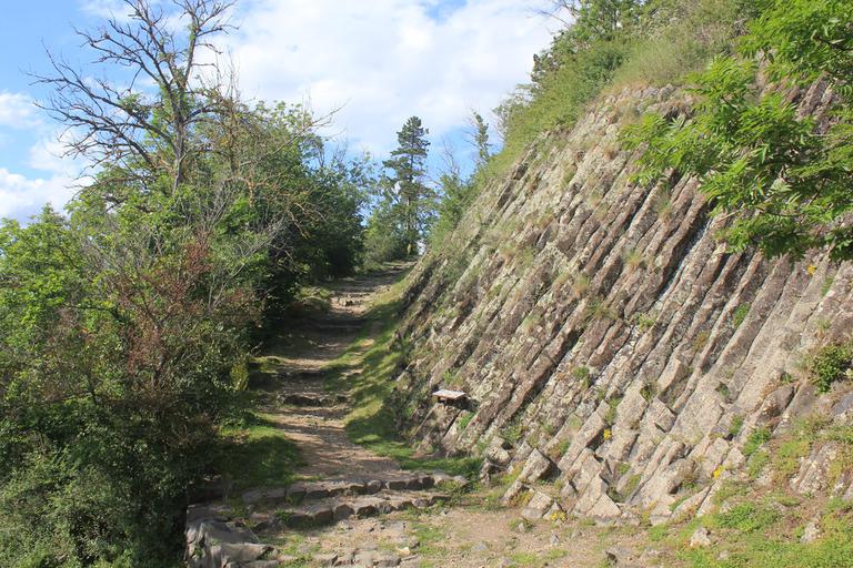 Nous montons toujours avec maintenant en point de mire l'église Saint-Maurice. Nous laissons l'église dans un premier temps pour rejoindre un site tout à fait extraordinaire situé sur l'autre versant de la butte, les orgues basaltiques. Un large pan de la colline est occupé par ces colonnes, cela nous rappelle l'Islande, et la Chaussée de Géant en Irlande. Je ne pensais pas découvrir un tel site en France...