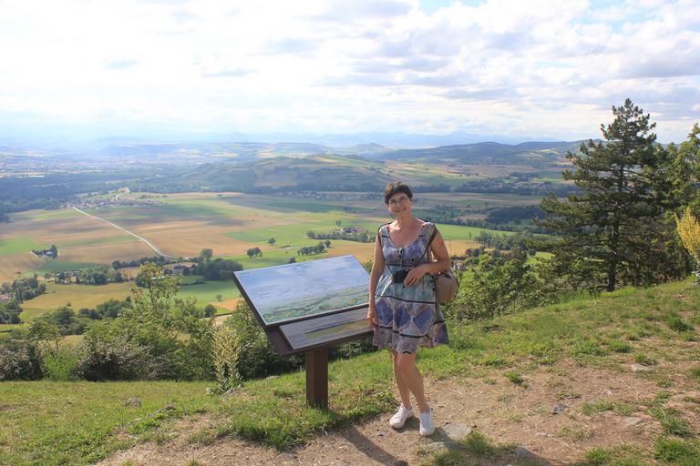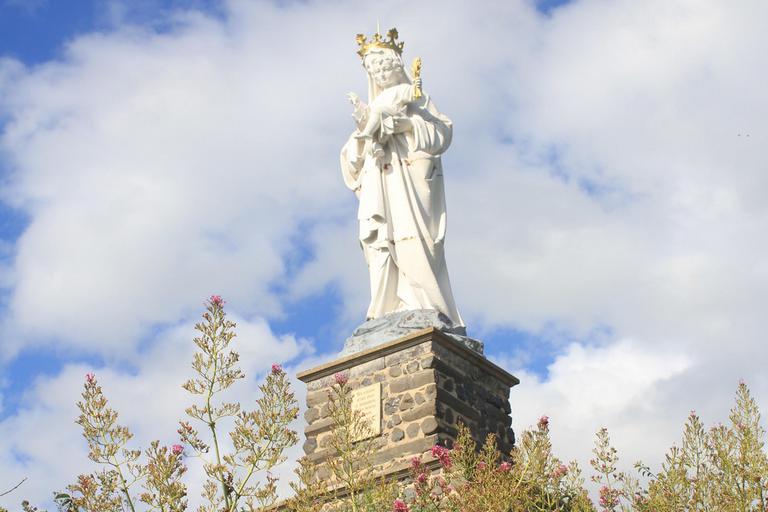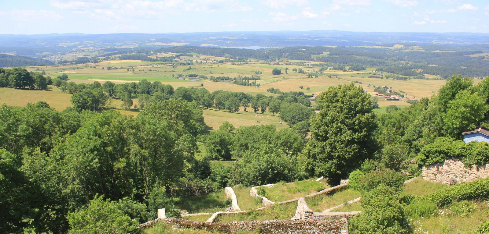 Nous continuons de monter et atteignons le sommet de la butte. Un monument à la Vierge a remplacé la forteresse, mais c'est surtout la vue imprenable sur la chaîne des Puys, le massif du Sancy et les monts du Livradois-Forez que nous retiendrons.