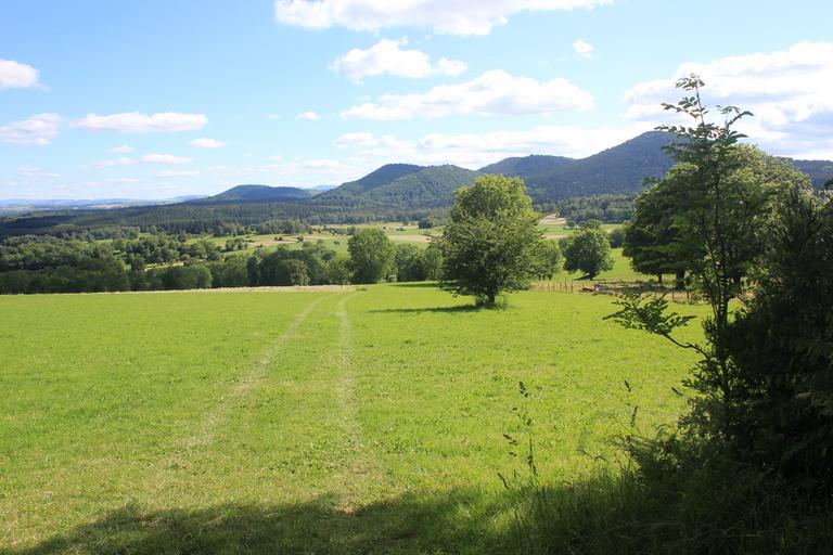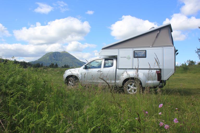 Nous prenons la D52, nous nous arrêtons entre Beaune-le-chaud et Laschamps, sur une clairière en retrait de la route. Nous sommes idéalement installés, juste en face du célèbre volcan. Un point négatif cependant, les mouches sont insupportables...