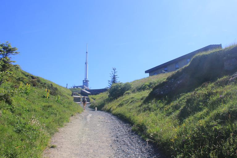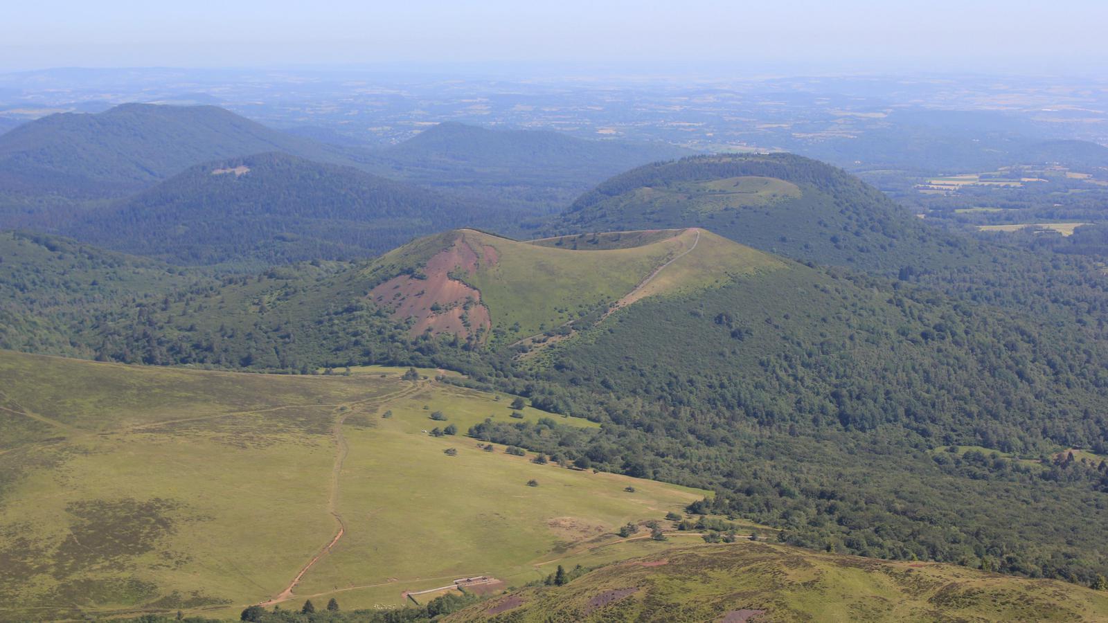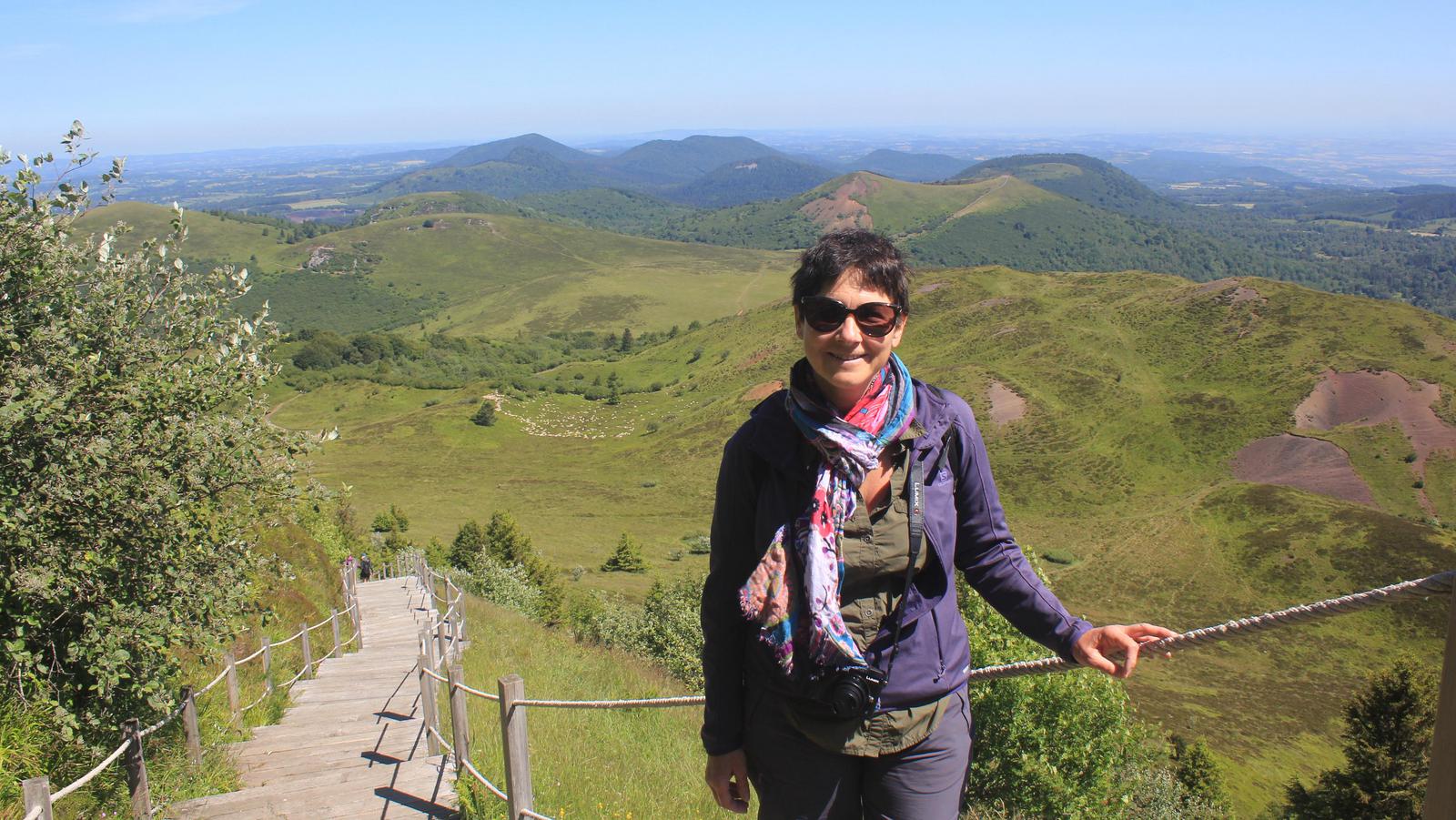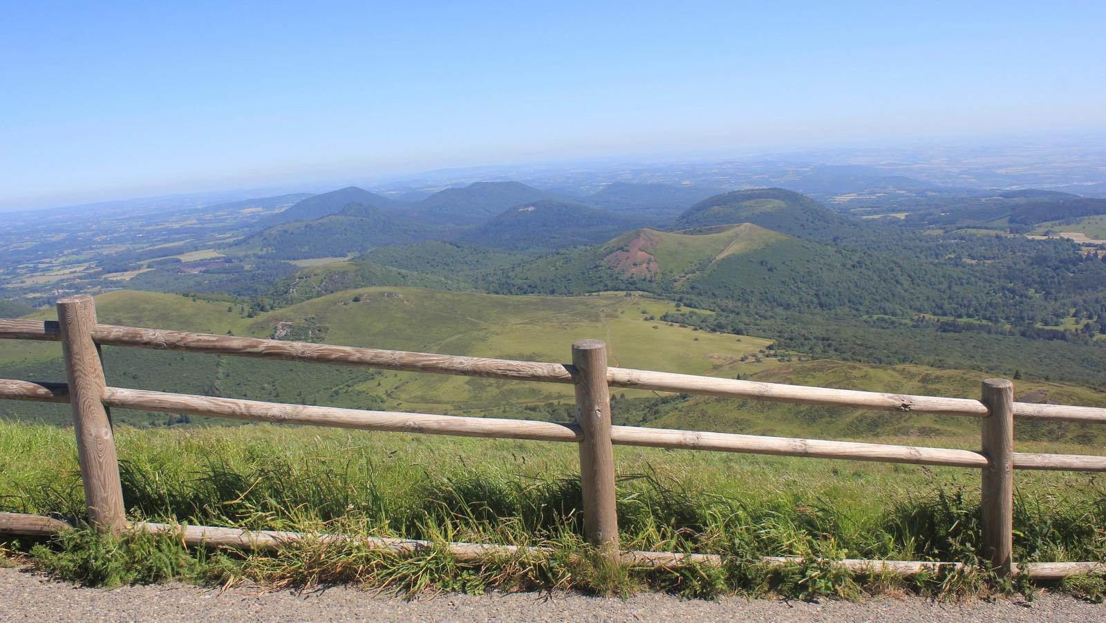 Nous arrivons au sommet. Nous sommes à 1 465m d'altitude et dominons la Chaîne des Puys et ses 80 volcans, inscrite depuis le 2 juillet 2018 sur la liste des sites naturels du patrimoine mondial de l'UNESCO.