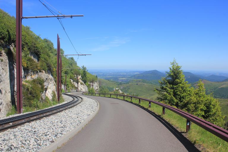 Nous redescendons par le chemin des Chèvres en suivant la voie ferrée sur quelques centaines de mètres, puis par une série d'escaliers en bois. Nous laissons le GR 4 partir vers le Puy de Pariou et revenons au parking par l'itinéraire du tour du Puy de Dôme.