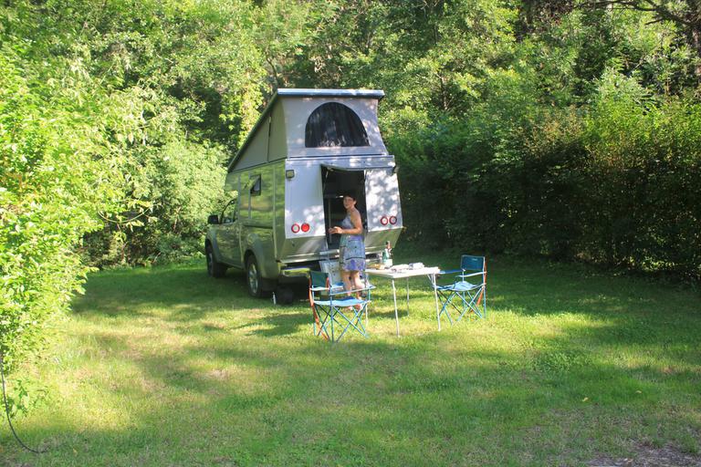 Nous continuons jusqu'au camping municipal. Celui-ci est encore fermé, mais il est accessible avec la carte Camping-Park, 10 euros la nuit. Les futurs gérants arrivent et nous voient hésiter. Ils nous proposent, à titre exceptionnel de nous ouvrir les douches, nous acceptons et achetons la carte rechargeable à 5 euros. Celle-ci pourra toujours nous servir.