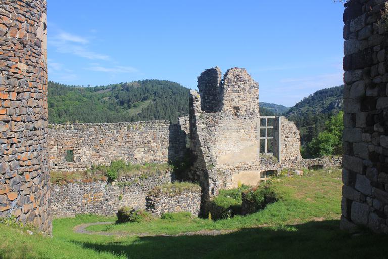 Nous laissons 6 euros par personne à l'aubergiste et repartons avec la fameuse clé. Nous passons la grille, montons encore et pénétrons dans l'enceinte. Bien qu'Il ne reste que des ruines d'époques très différentes, le site est très vaste et donne libre cours à l'imagination de chacun. Autant je passe parfois rapidement à travers les pièces d'un château parfaitement conservé, autant je me surprends à prendre mon temps au milieu de ces vestiges !