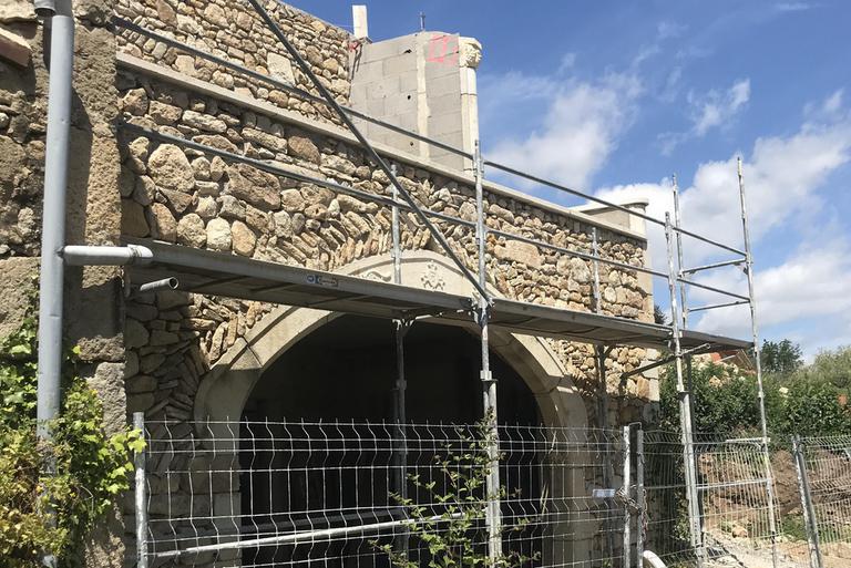 Montpeyroux est un village perché construit autour d'un donjon datant du XIIIè siècle. Ce sont les carrières locales qui ont fourni la pierre utilisée, l'arkose, au ton blond chaleureux, une teinte qui tranche avec celle des constructions en pierres volcaniques noires courantes dans la région. Ce matériaux noble fît la renommée du village et sa richesse. Au début du XXè siècle, six carrières étaient encore en activité autour du village, la dernière cessa définitivement son activité en 1935.