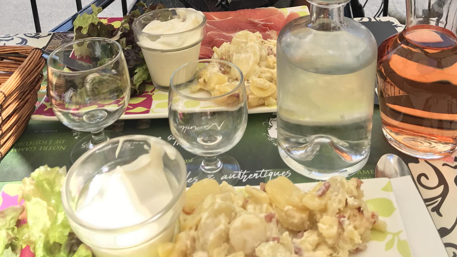 Nous décidons d'aller déjeuner dans un des restaurants du village et choisissons La Bougnate et sa jolie terrasse. Nous découvrons après le repas que cet ancien relais de poste appartient et a été transformé en auberge, par l'ancien animateur-acteur TV Gérard Klein...