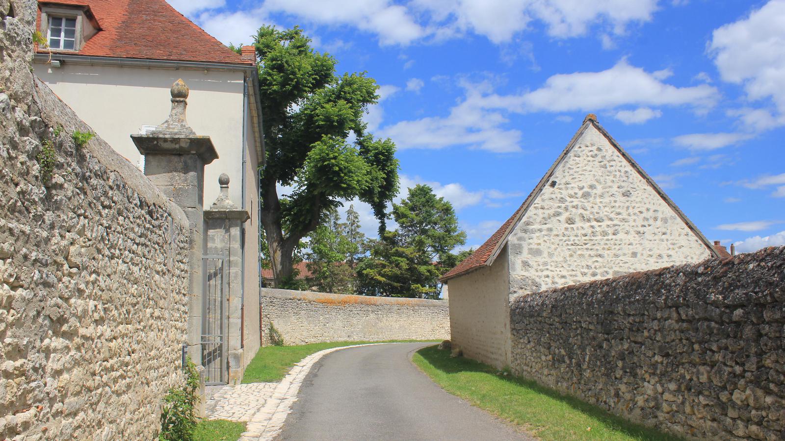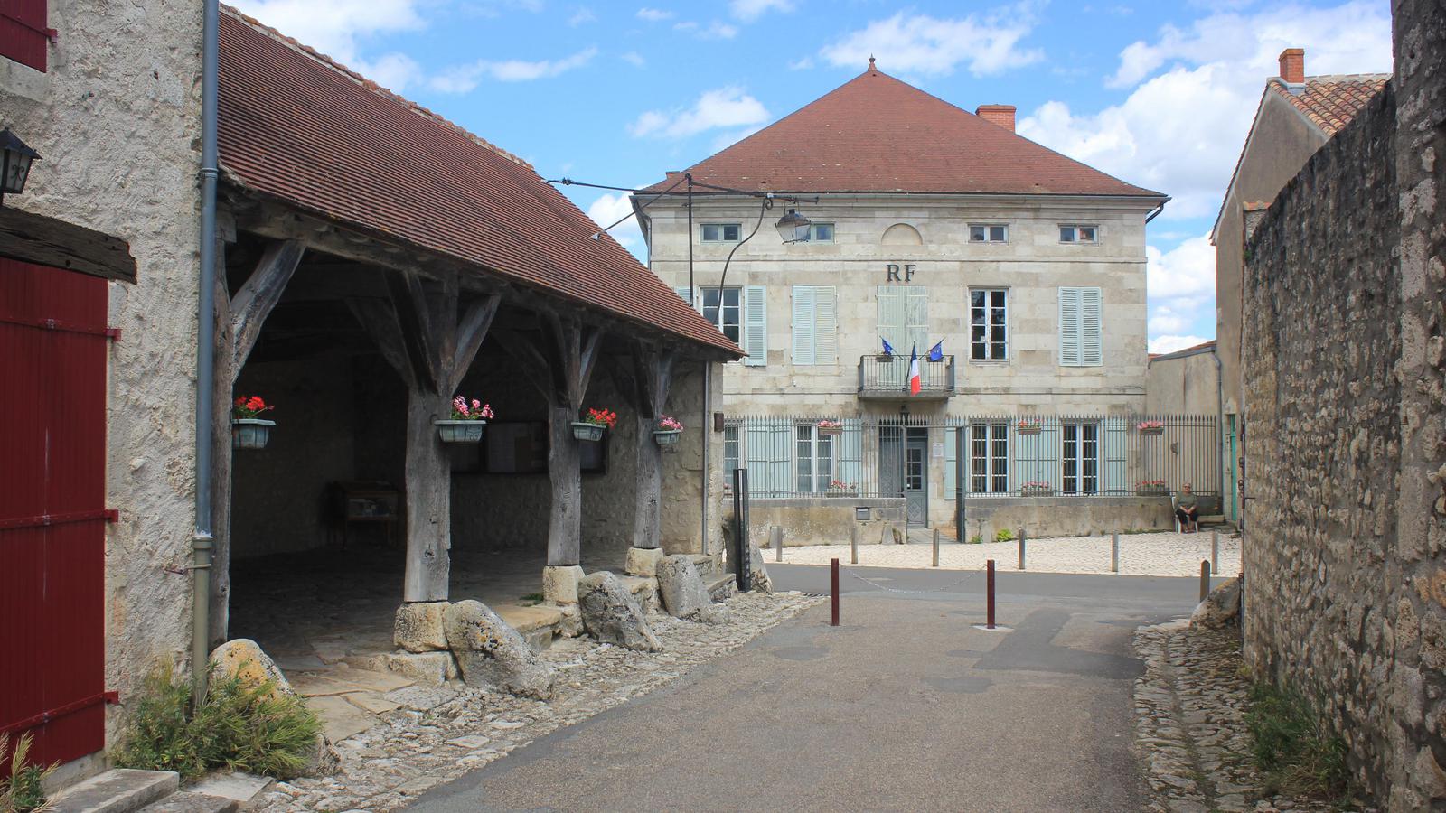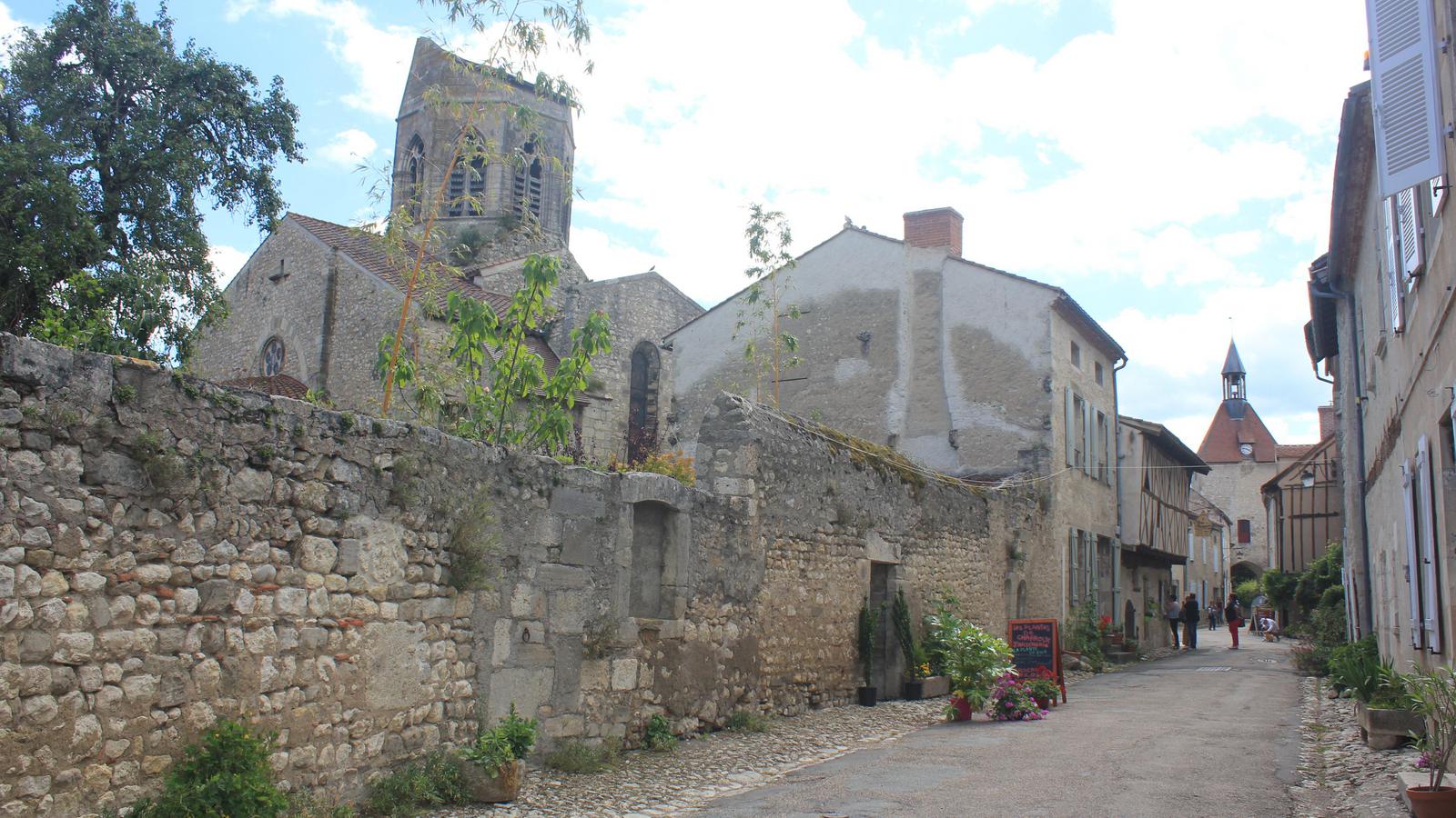 Les ruelles pavées fleuries du village nous donnent accès à un superbe patrimoine : des maisons anciennes, l'église Saint-Jean-Baptiste datant du XIIe siècle et son clocher tronqué, la tour de l'horloge, la halle aux piliers de bois, et une demeure à colombages et encorbellements du XIVe siècle.