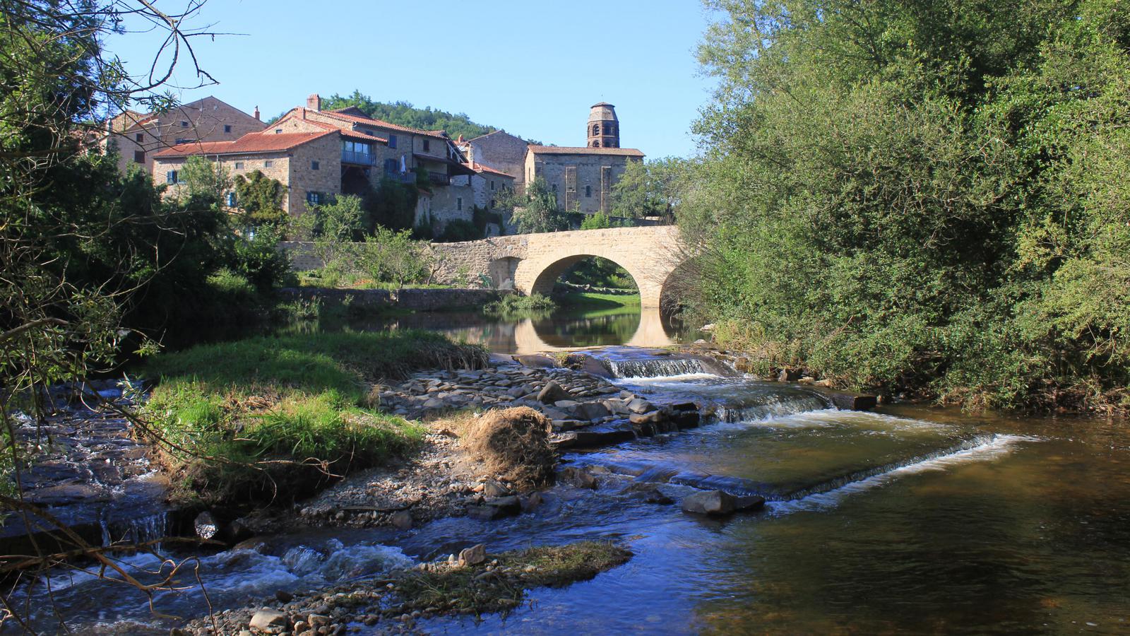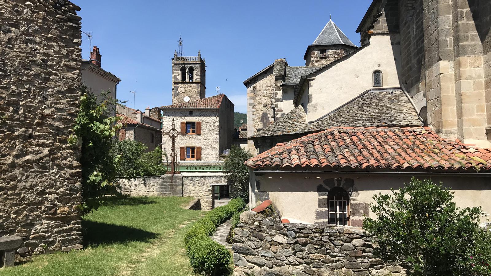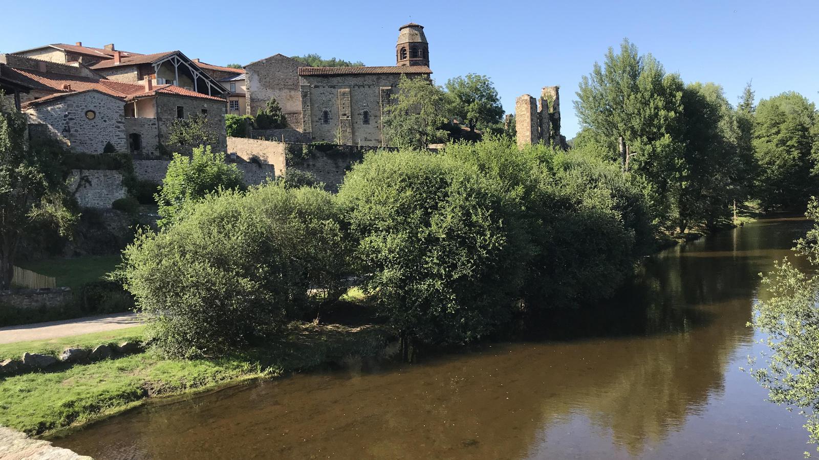 Nous partons pour une première reconnaissance du village en remontant la rivière Senouire jusqu'au vieux pont de pierre, puis nous revenons par les ruelles. Le cloître et l'abbaye sont déjà fermés, ils ouvriront demain à partir de 10h30, nous reviendrons.