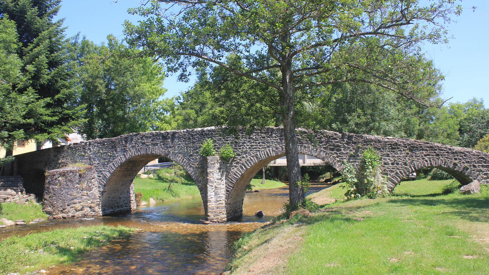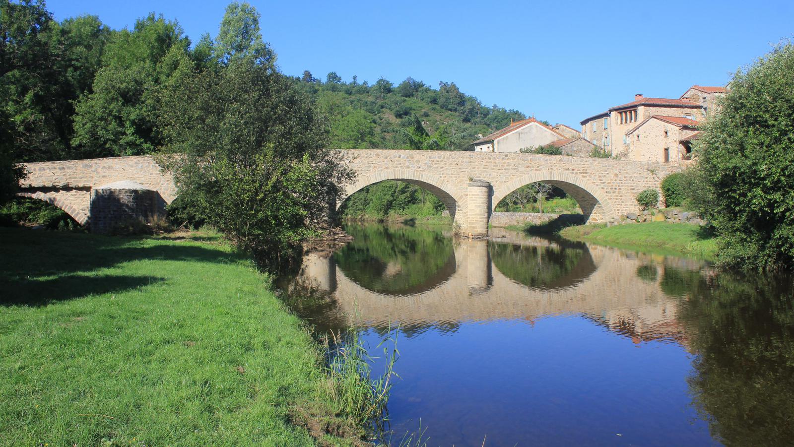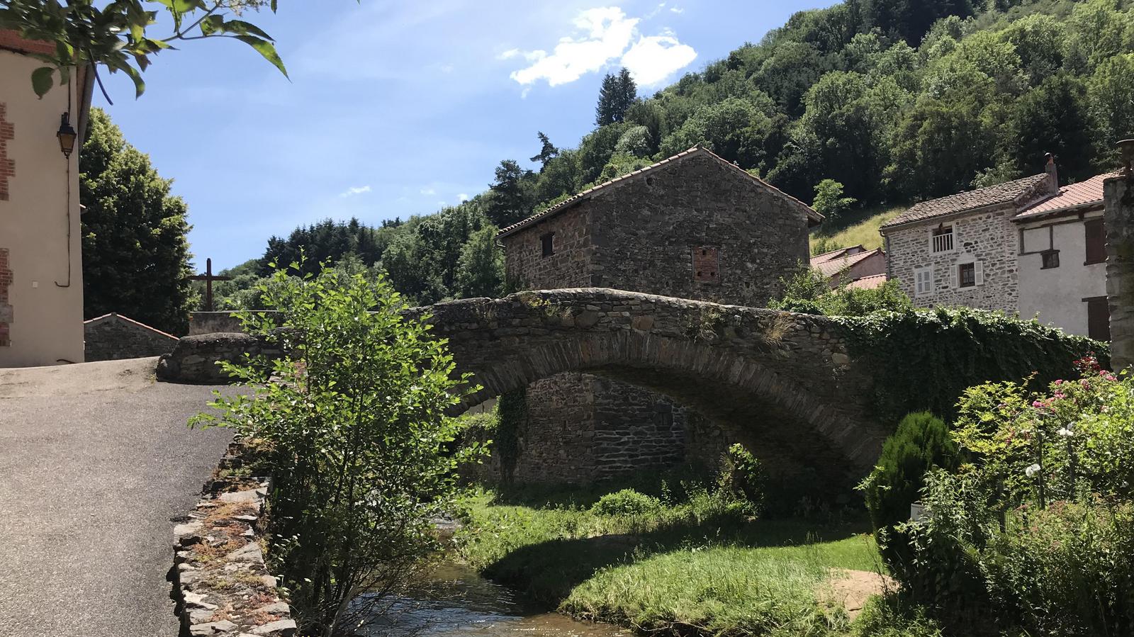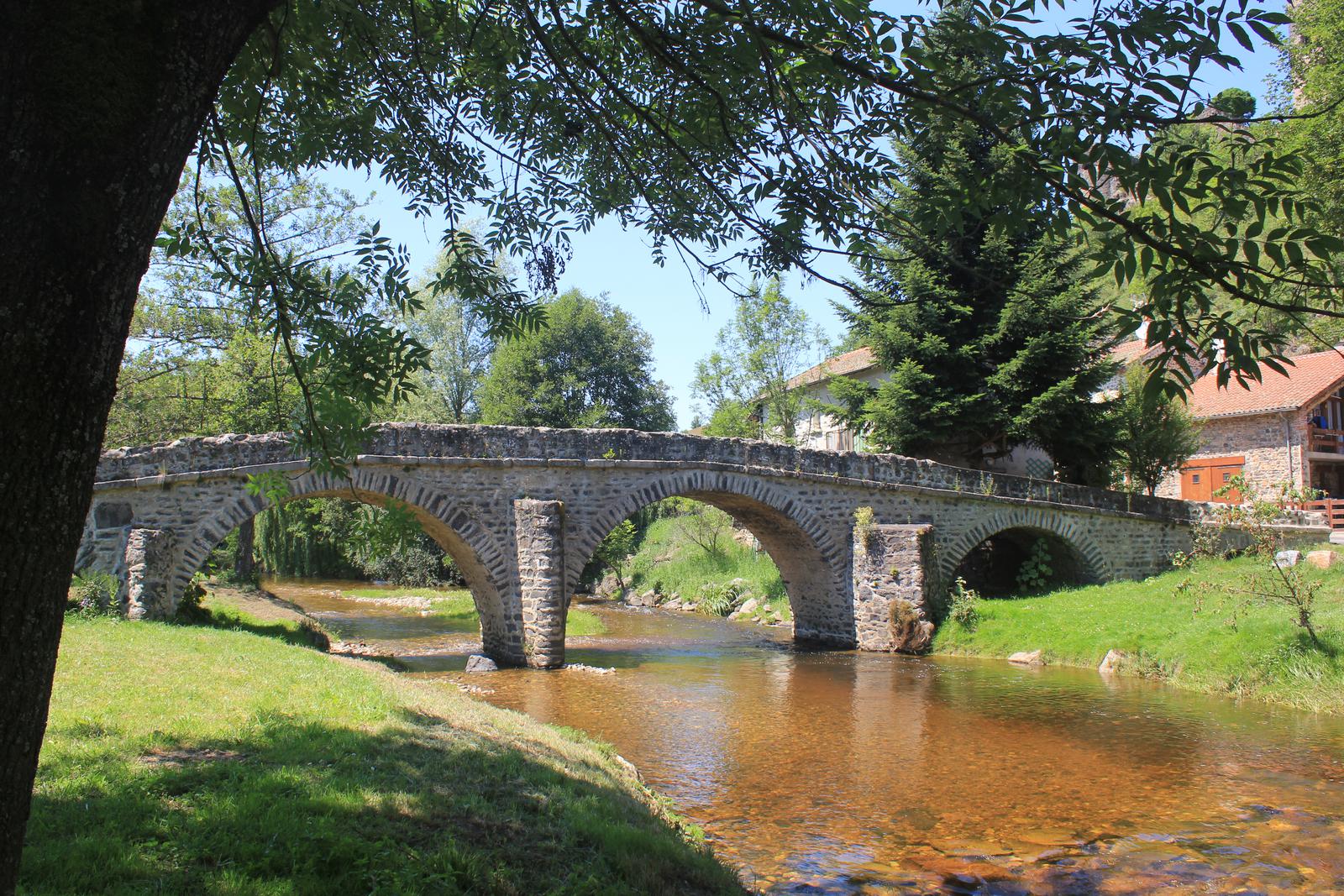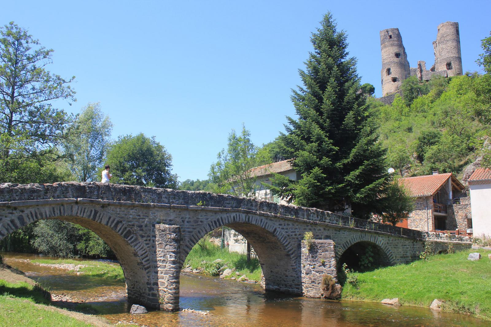 Nous reprenons la route en direction d'Arlempdes. Nous parcourons quelques kilomètres et apercevons les tours d'un château. Nous quittons notre itinéraire et nous approchons de celui-ci. Nous sommes à Domeyrat, nous retrouvons la Senouire, qu'un magnifique pont de pierre enjambe. Le château qui surplombe le village est fermé, nous poursuivons notre route.
