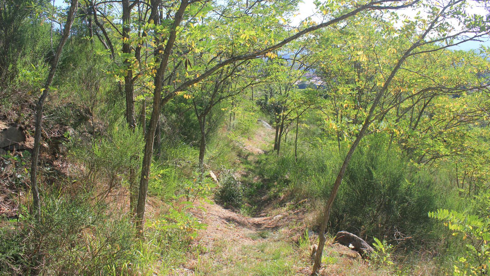 Notre petite balade tourne court, avec le confinement la nature a repris ses droits et le sentier, qui n'a pas dû voir le moindre promeneur cette année, a disparu sous les herbes et les ronces.