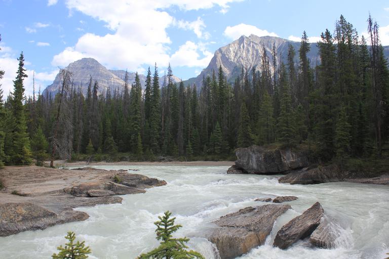 Nous faisons quelques courses à Golden puis partons pour Banff par la Highway 1. Nous nous arrêtons pour déjeuner à Field, au bord de la rivière Kicking Horse, au calme sur la rive opposée au bureau d'information du parc Yoho.