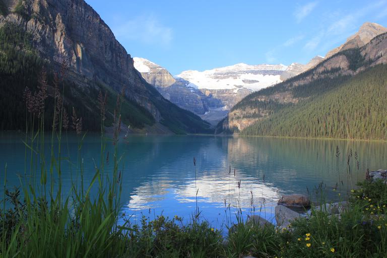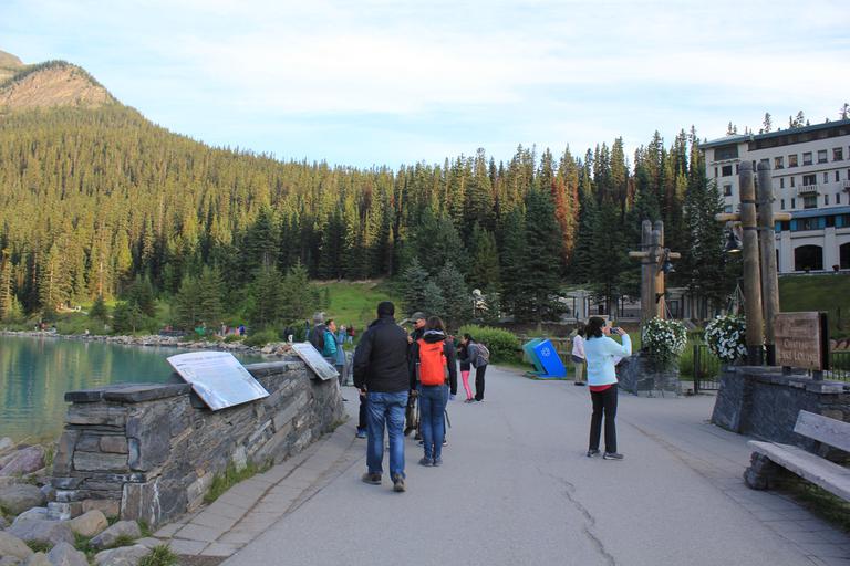 Selon les indications du guide du bureau Field, il existe deux façons de venir à Lake Louise, soit en utilisant les navettes fonctionnant de 8h00 à 16h30, soit en s'y rendant de ses propres moyens, mais dès 6h00, pour être sûr d'avoir une place de parking. Ensuite, la route est fermée aussitôt que le parking est plein... Le stationnement à Lake Louise est gratuit, en revanche celui des navettes coûte CAD$10,50 nuit comprise, et les navettes CAD$4,00 par personne. Nous choisissons de mettre notre réveil à 5h45 et de filer là-bas immédiatement.