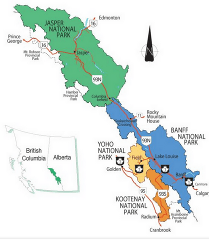Cet itinéraire va de lake Louise à Jasper par l'highway 93, relie les parcs nationaux de Banff et Jasper et fait près de 250 km.