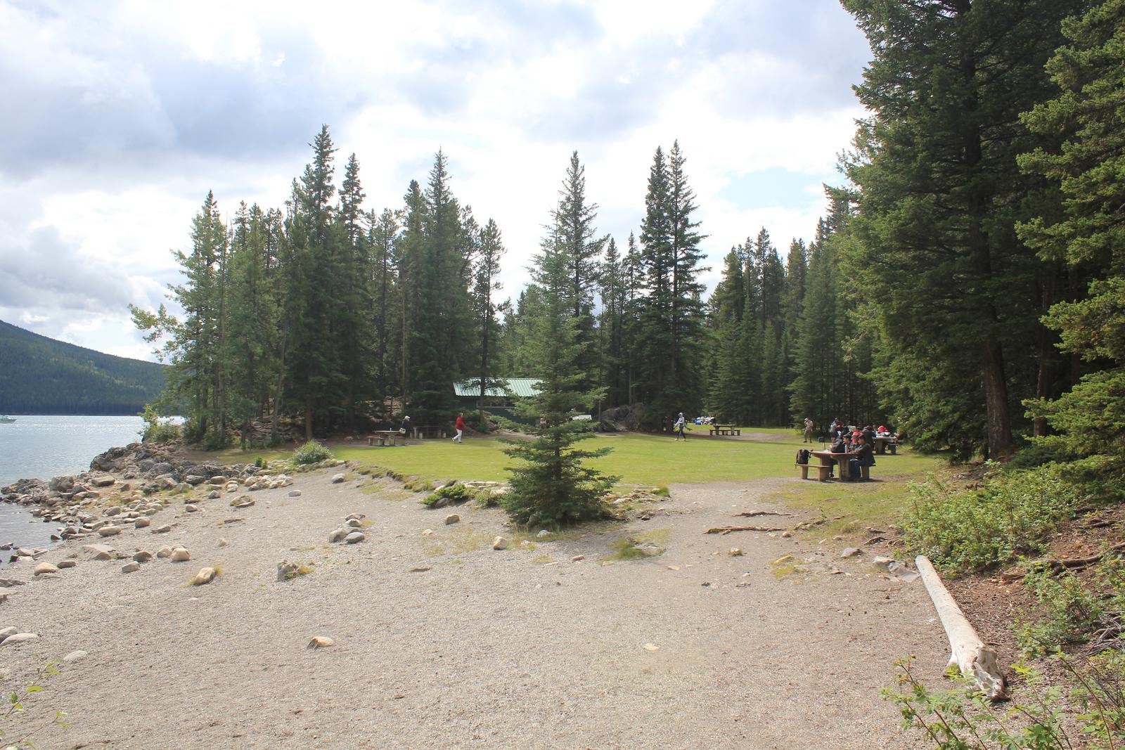 Nous reprenons la route, passons les lacs Mistaya et Waterfowl. Nous profitons au passage de l'aire de service de son campground.