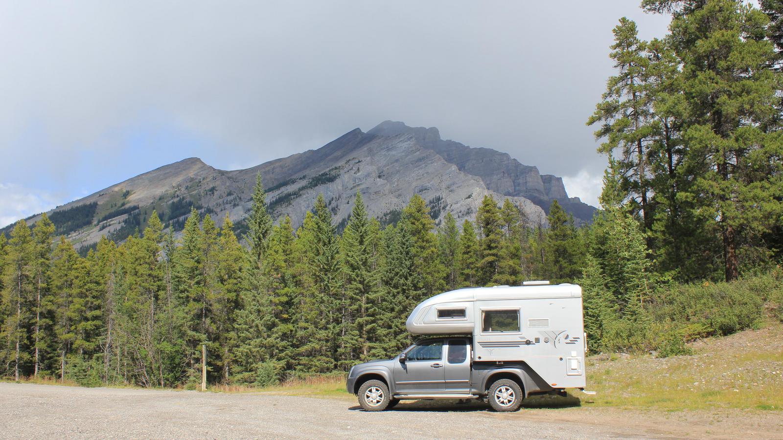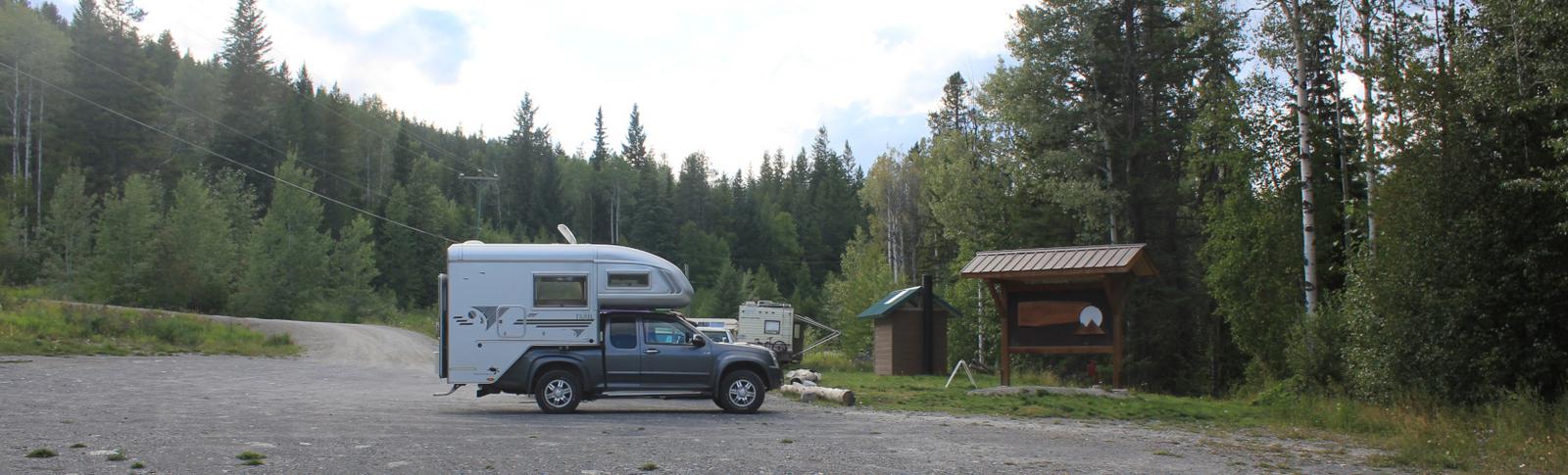 Ioverlander nous propose le parking du motel the Crossing, celui-ci nous semble un peu bruyant, nous préférons suivre la route 11 et sortir du parc de Banff. Nous nous arrêtons pour la nuit sur une boucle en gravier à l'écart de la route.