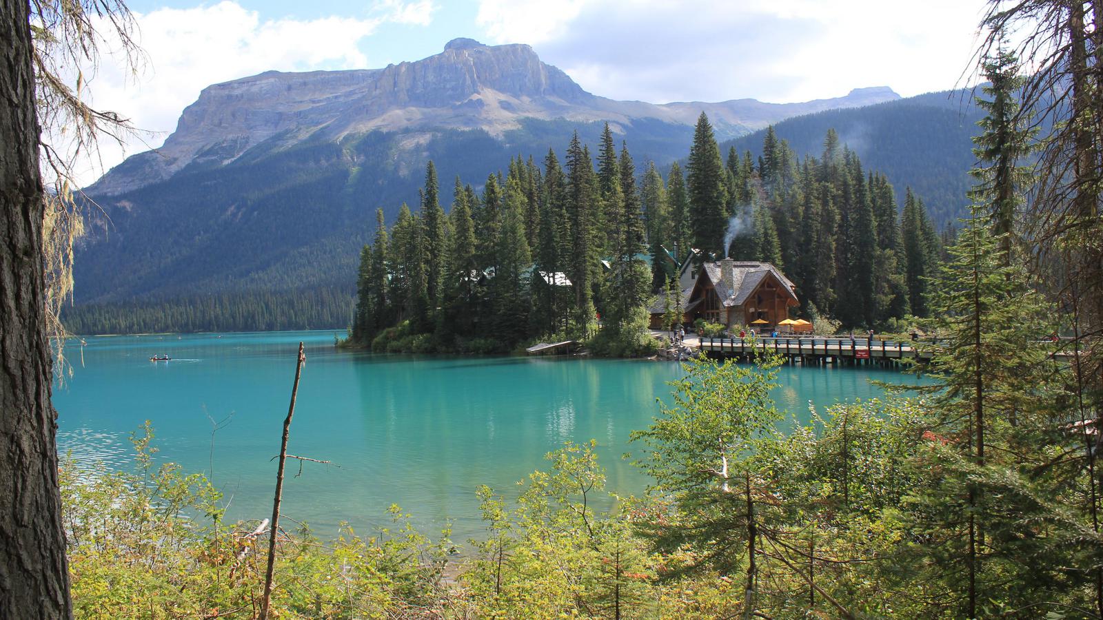 Aujourd'hui nous allons visiter le parc national de Yoho, et avons décidé de partir tôt pour découvrir le lac Emeraude avant l'afflux des touristes. Une petite heure est nécessaire pour rejoindre ce lac par la route 1, nous y arrivons à 9h00 pile.