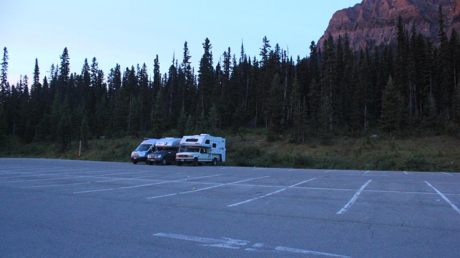 Nous retournons nous installer pour la nuit sur le parking des navettes de Lake Louise.