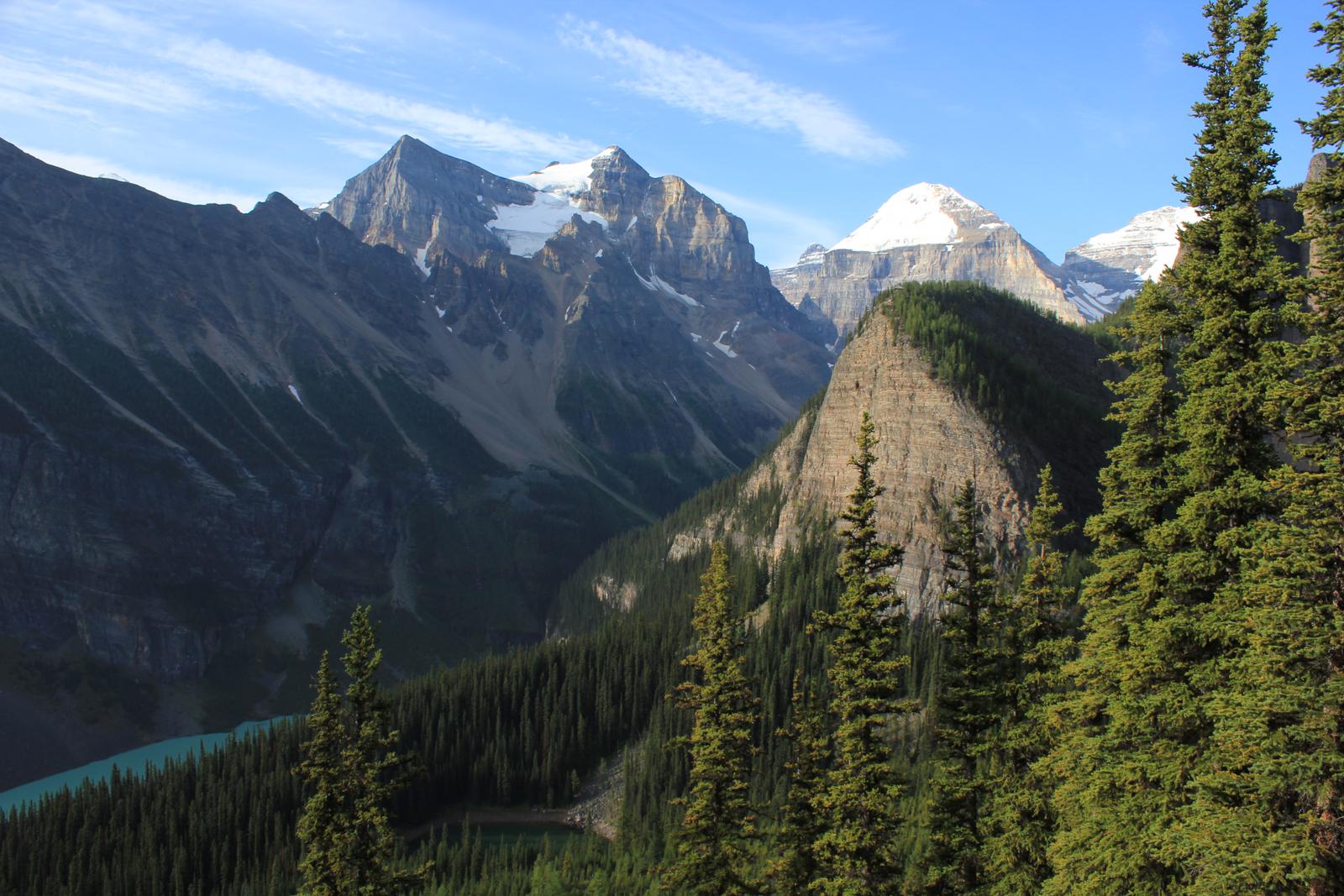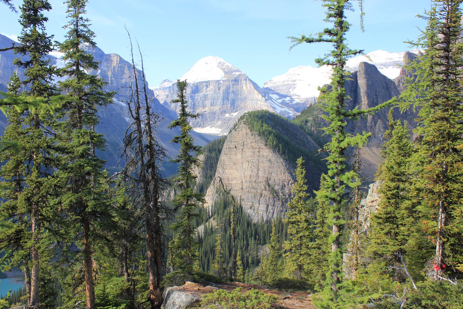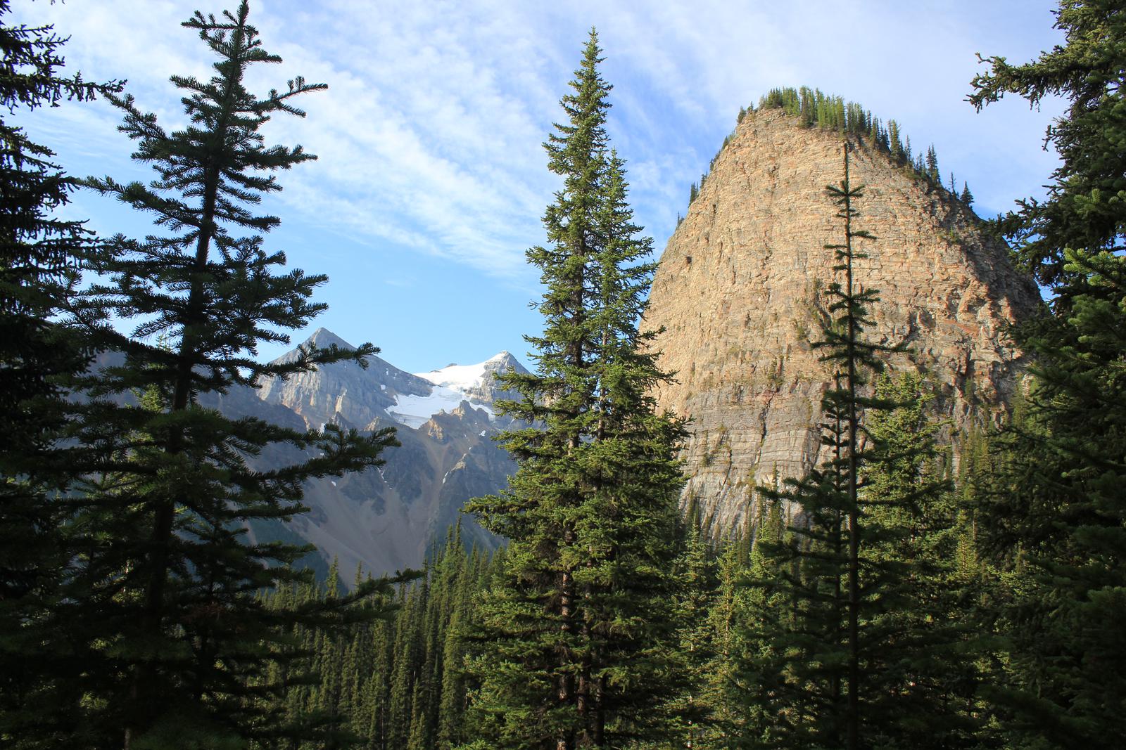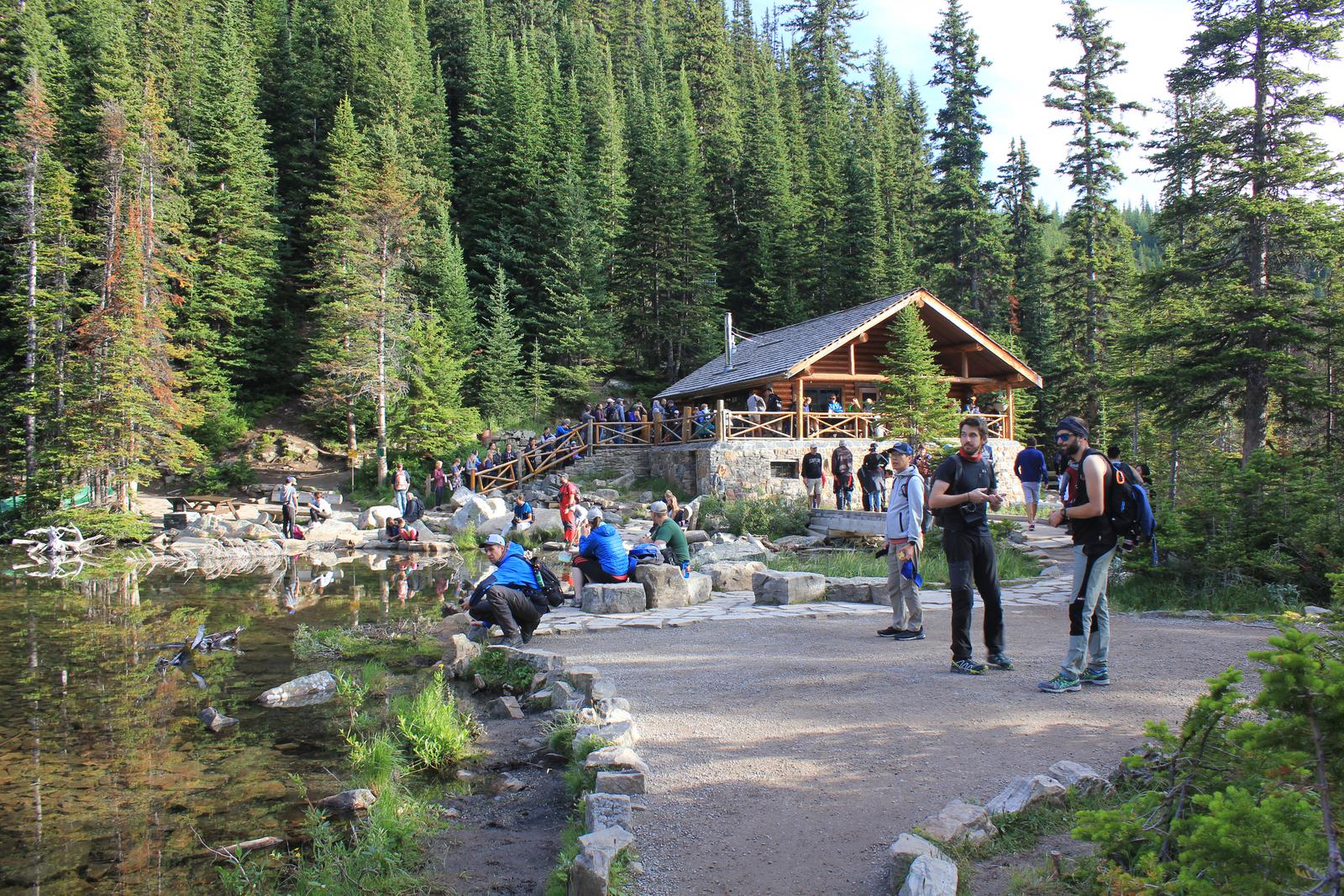 Un quart d'heure de marche et nous découvrons le lac Agnes et sa tea house. Il n'est pas encore 9h00, la queue pour se faire servir fait déjà plus de 20m... Nous continuons en suivant les indications Little Beehive.