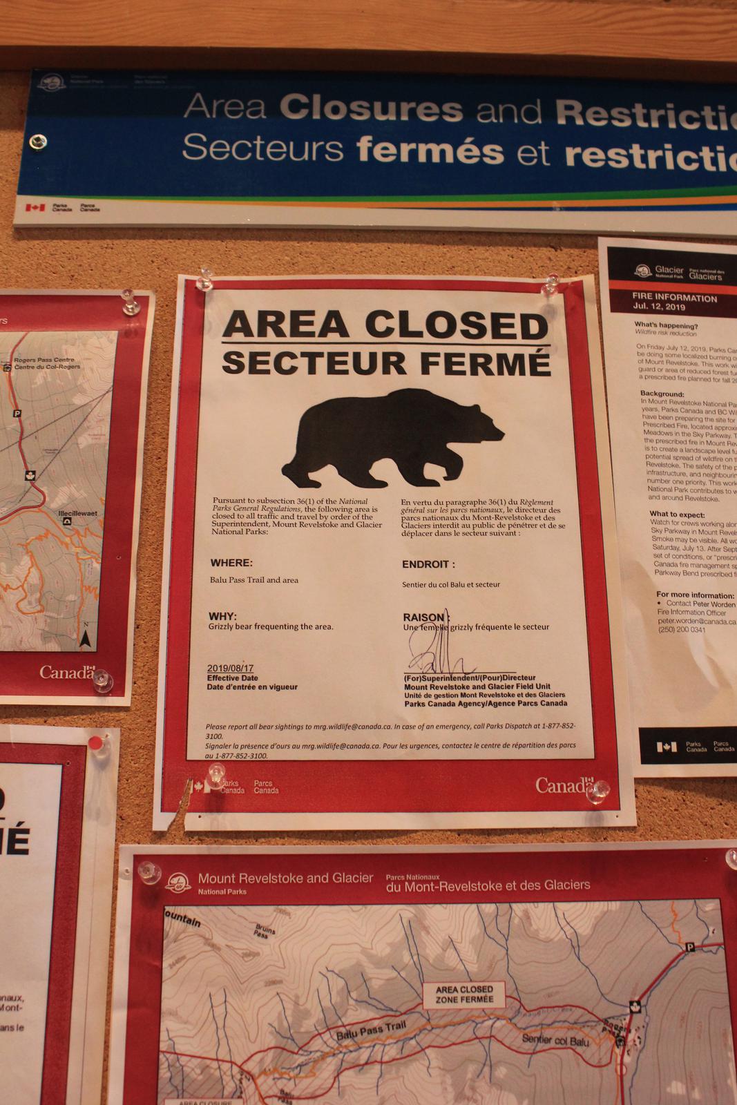 Il est interdit de passer la nuit sur le parking où nous sommes garés, comme sur tous les autres d'ailleurs, non seulement de la ville mais également du parc de Banff. La liste des bivouacs que nous avons emportée n'est plus d'actualité et un responsable du parc est même intervenu en mai 2018 sur tous les spots d'Ioverlander pour préciser qu'il est obligatoire de passer la nuit sur un camping...