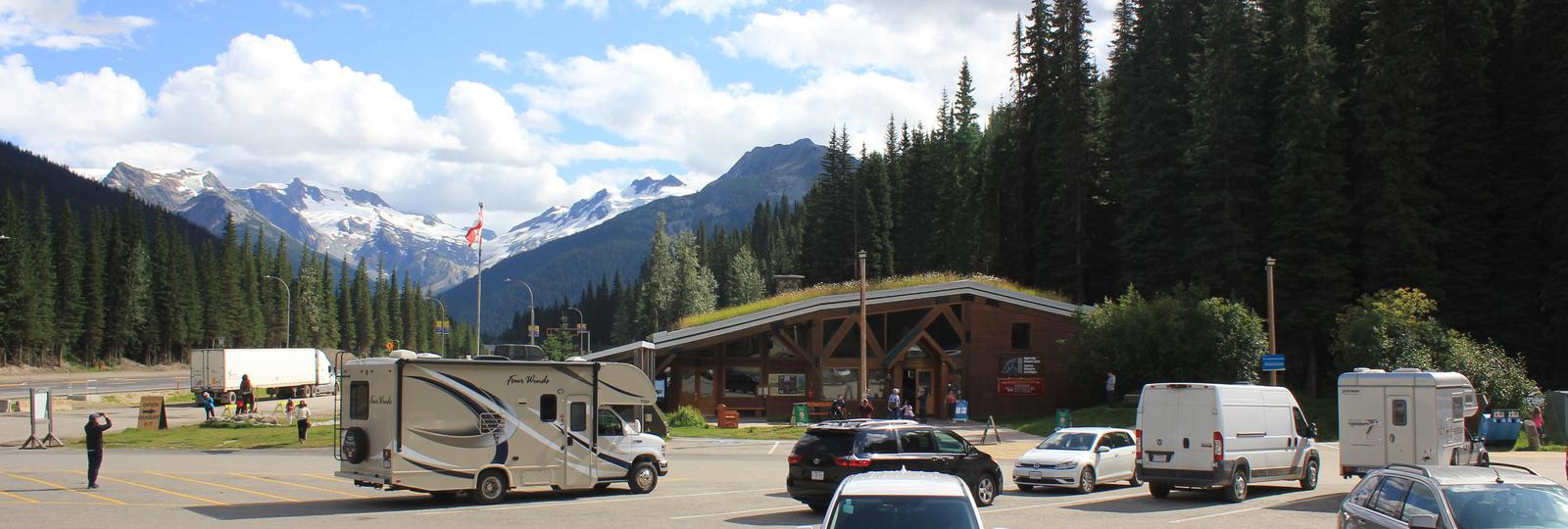 Nous visitons le bureau de tourisme du parc, Isa revient avec un précieux renseignement, l'adresse du parking des navettes pour le lac Louise où les camping-car peuvent passer la nuit.... Nous reprenons la route et rejoignons ce parking.