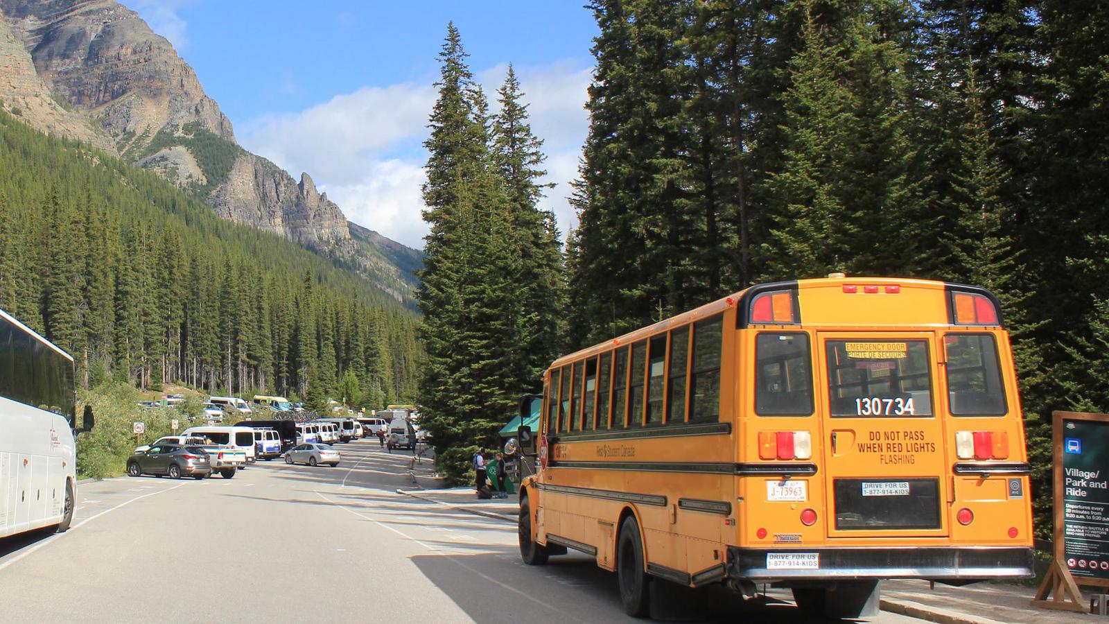 Le stationnement en journée à Banff est gratuit et un circuit de navettes permet de rejoindre le centre ville pour les parkings les plus éloignés.
