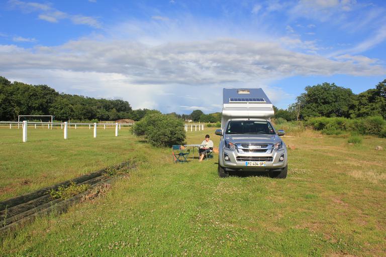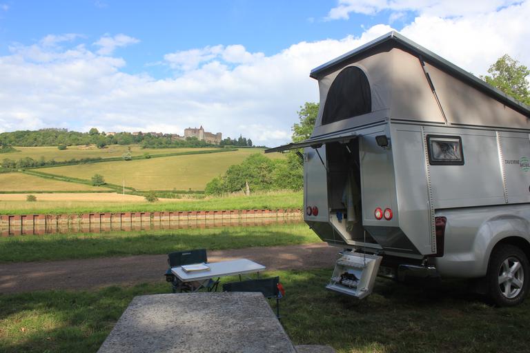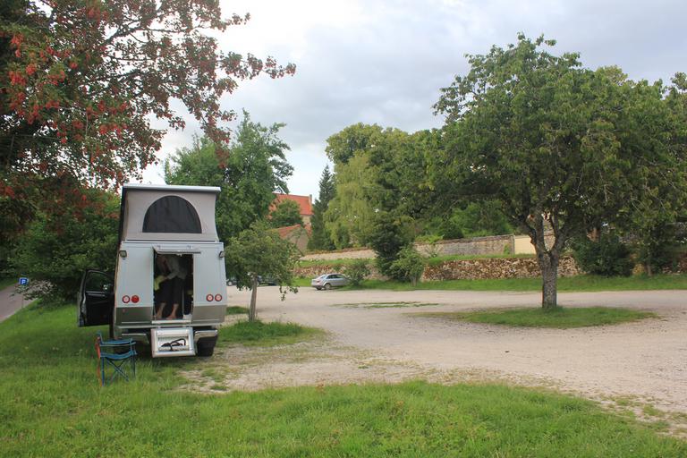 Nous entrons en Saône-et-Loire. A Semur, deux possibilités de bivouac s'offrent à nous, l'environnement pavillonnaire du parking de l'aire de service ne nous satisfait pas, nous lui préférons l'espace champêtre près du terrain de foot.