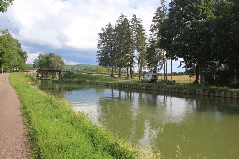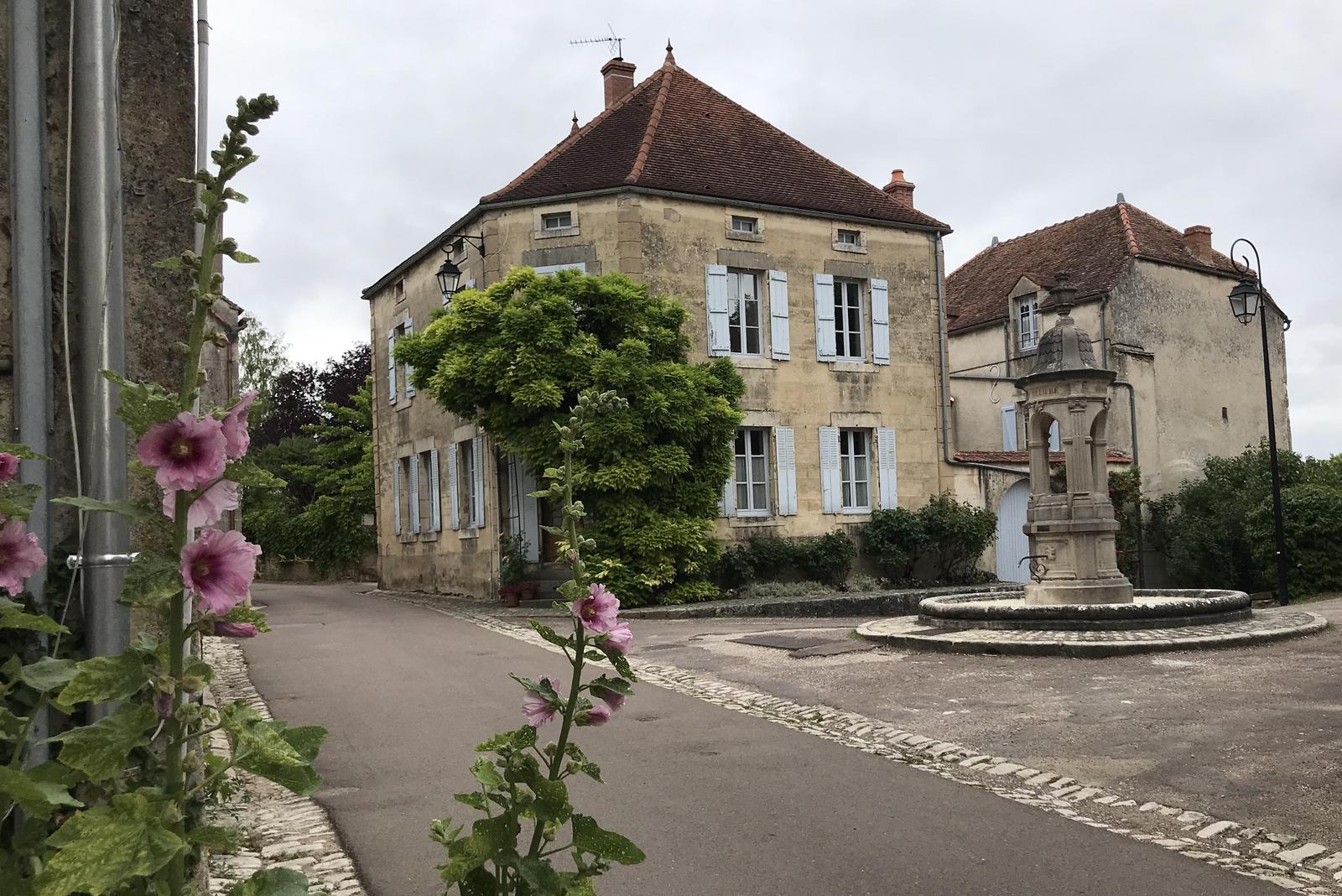 Nous arrivons à notre étape. Nous sommes au pied du bourg fortifié, le long du canal de Bourgogne. Autour de nous, des champs de blé parsemés de bleuets et de coquelicots. Cela fait plaisir de revoir ces fleurs qui avaient quasiment disparus des campagnes.