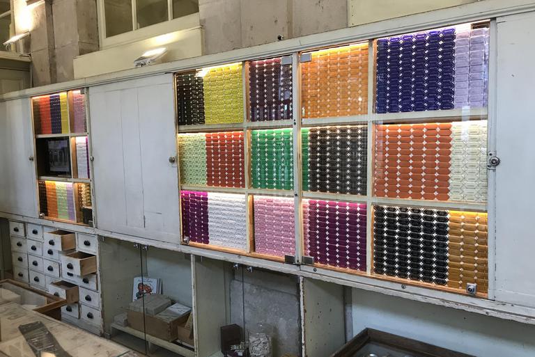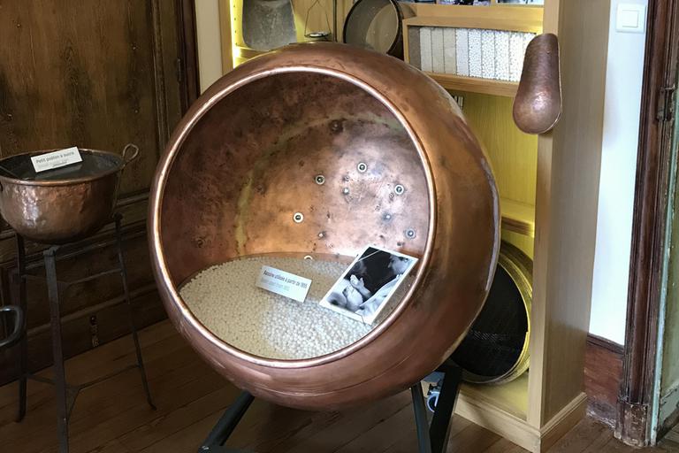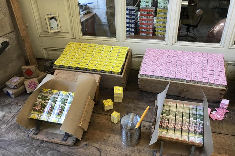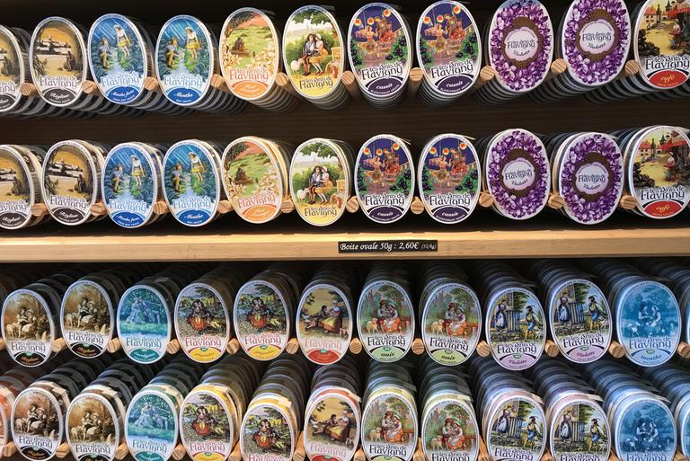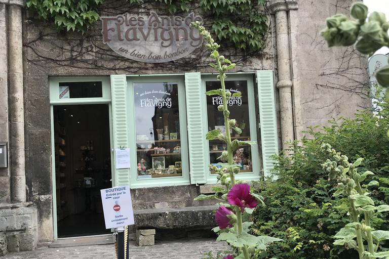 Nous franchissons une porte fortifiée et arrivons devant l'abbaye Saint-Pierre. Ici sont fabriqués les Anis de Flavigny depuis 1591, et la recette n'a pas changé depuis cette date. Habituellement, la production se visite, mais dans cette période post-confinement, seul un itinéraire a été aménagé dans le musée et la boutique. Celui-ci est néanmois très intéressant et je suis immédiatement surpris par la modernité du packaging coloré de ces dragées, que j'imagine pour le moins inspirant pour tous les vendeurs de dosettes de café...