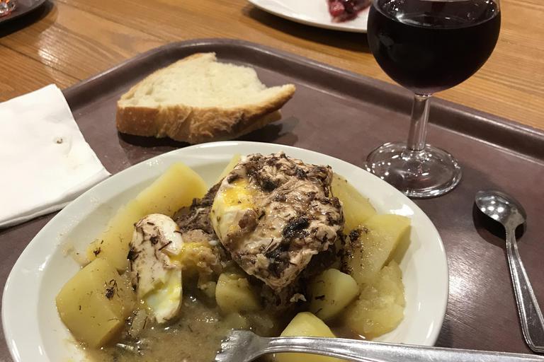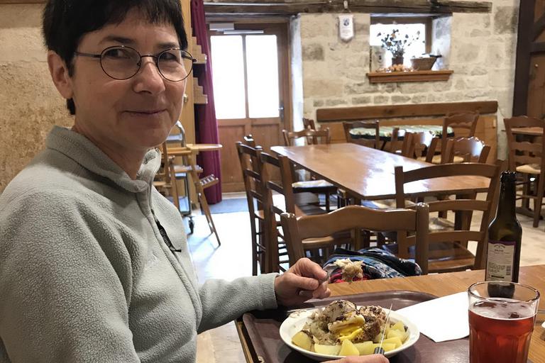Midi approche et c'est sur la place de l'église Saint-Genest que nous nous retrouvons une nouvelle fois, devant les écriteaux de La Grange, une authentique ferme-auberge gérée par une coopérative d'agricultrices. Les menus sont rustiques, à la hauteur du cadre et de nos attentes, oeufs en meurette et tarte aux cerises...