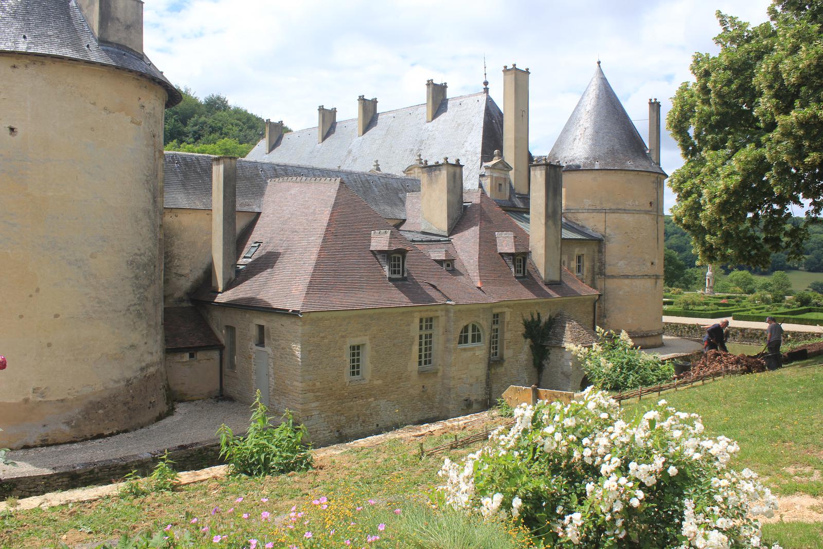 Nous sommes vraiment déçus. Nous décidons de revenir sur nos pas de quelques kilomètres pour aller visiter le Château de Commarin dont nous avions vu la description sur le panneau d'information à Flavigny. Après vérification, il est bien réouvert aux visites libres depuis une dizaine de jours.