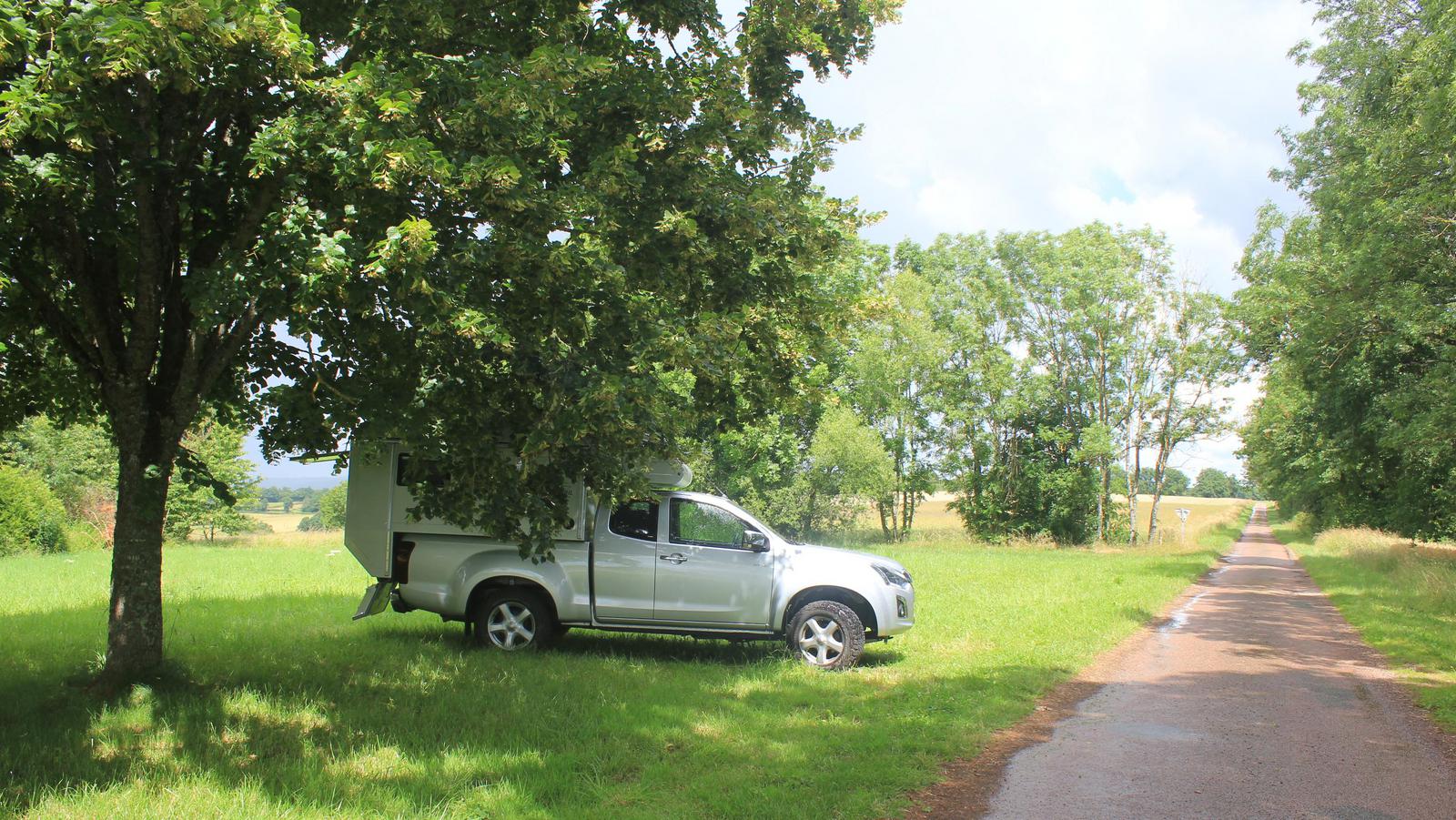 Nous reprenons la route en direction de Semur-en-Brionnais. Nous nous arrêtons pour déjeuner au milieu de la campagne, à l'ombre d'un tilleuil en fleur.