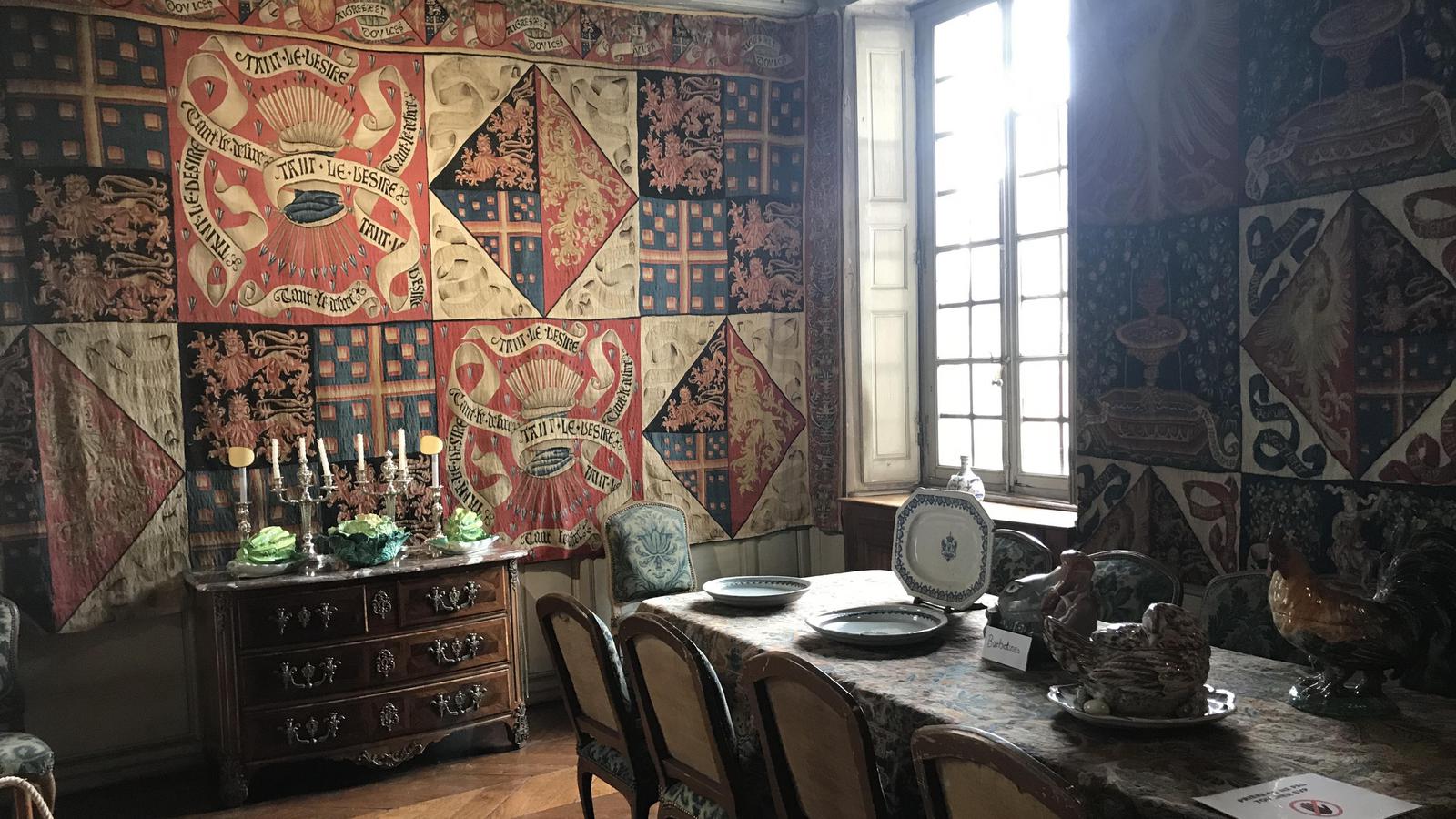 L'entrée est à 7,90€ par personne, pour l'intérieur et le parc. Le château est entouré de douves et de pelouses bien entretenues. Il est occupé par la même famille, par successions et alliances, depuis près de 9 siècles. La famille de Voguë qui l'habite et l'entretient actuellement est la 26è génération de propriétaires. il a traversé la révolution sans être détruit ou pillé et on peut y voir des meubles et des tapisseries du XVIIè siècle. Nous passons un agréable moment.