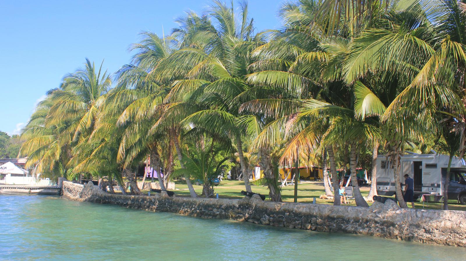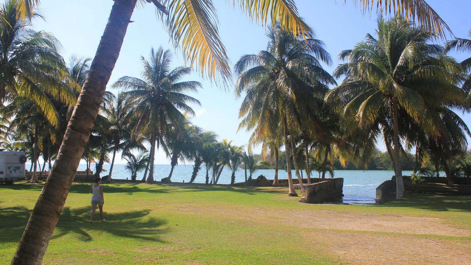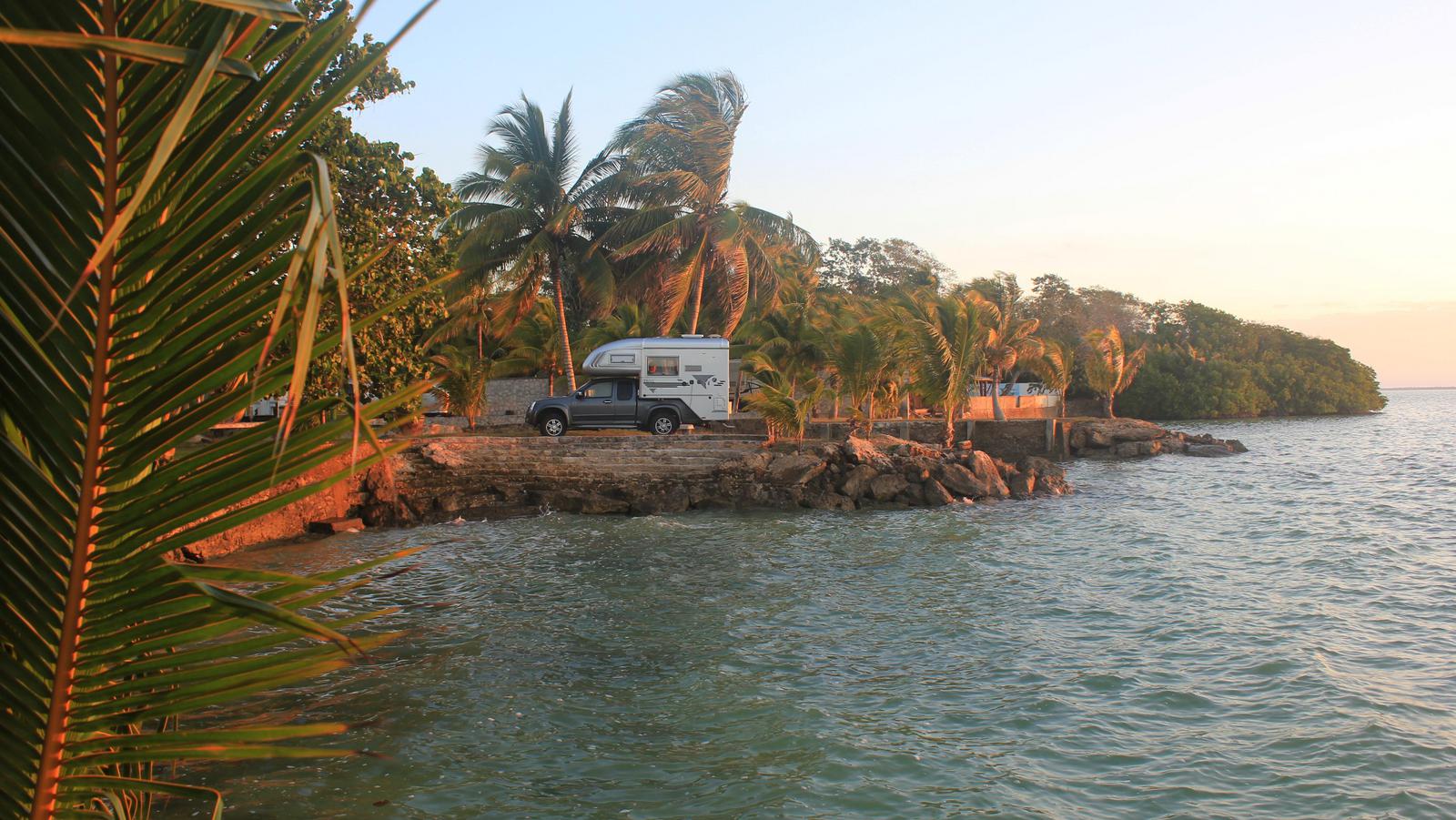Ce camping est certainement le plus beau du voyage et notre emplacement au bord de l'eau sous les palmiers est extraordinaire.